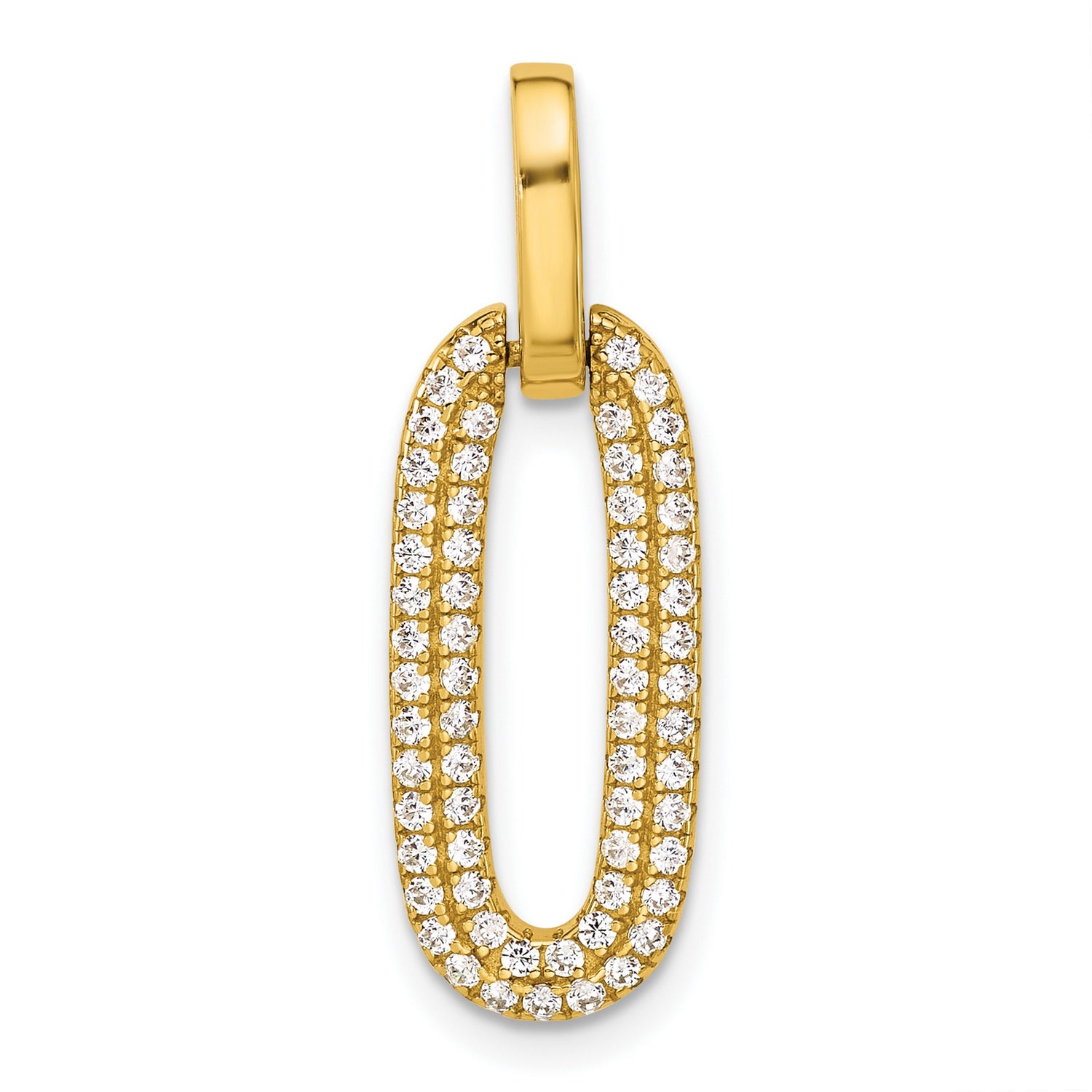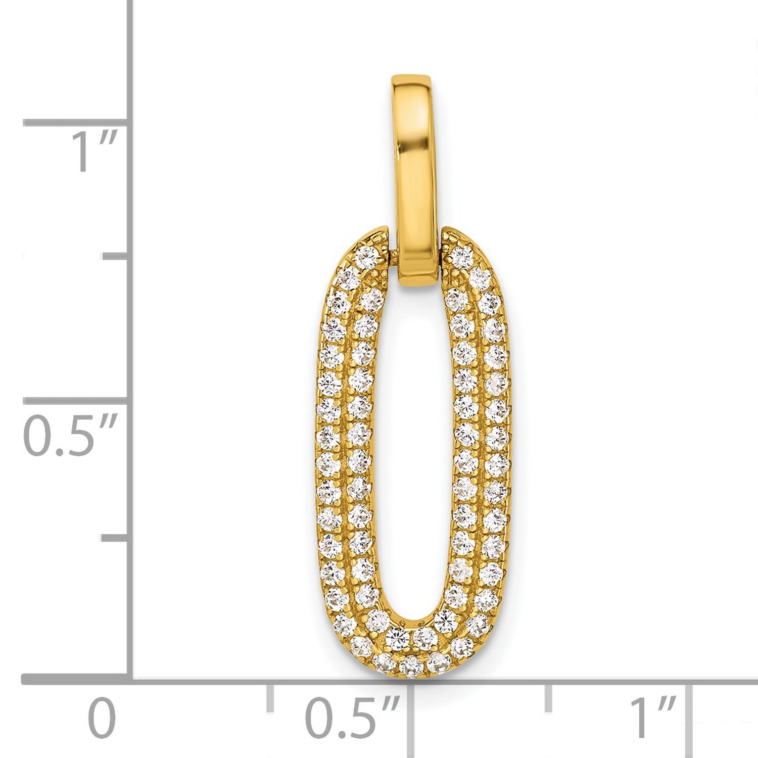 Sterling Silver Oval Link Pendant with Cubic Zirconia, Gold-Plated Modern Geometric Design