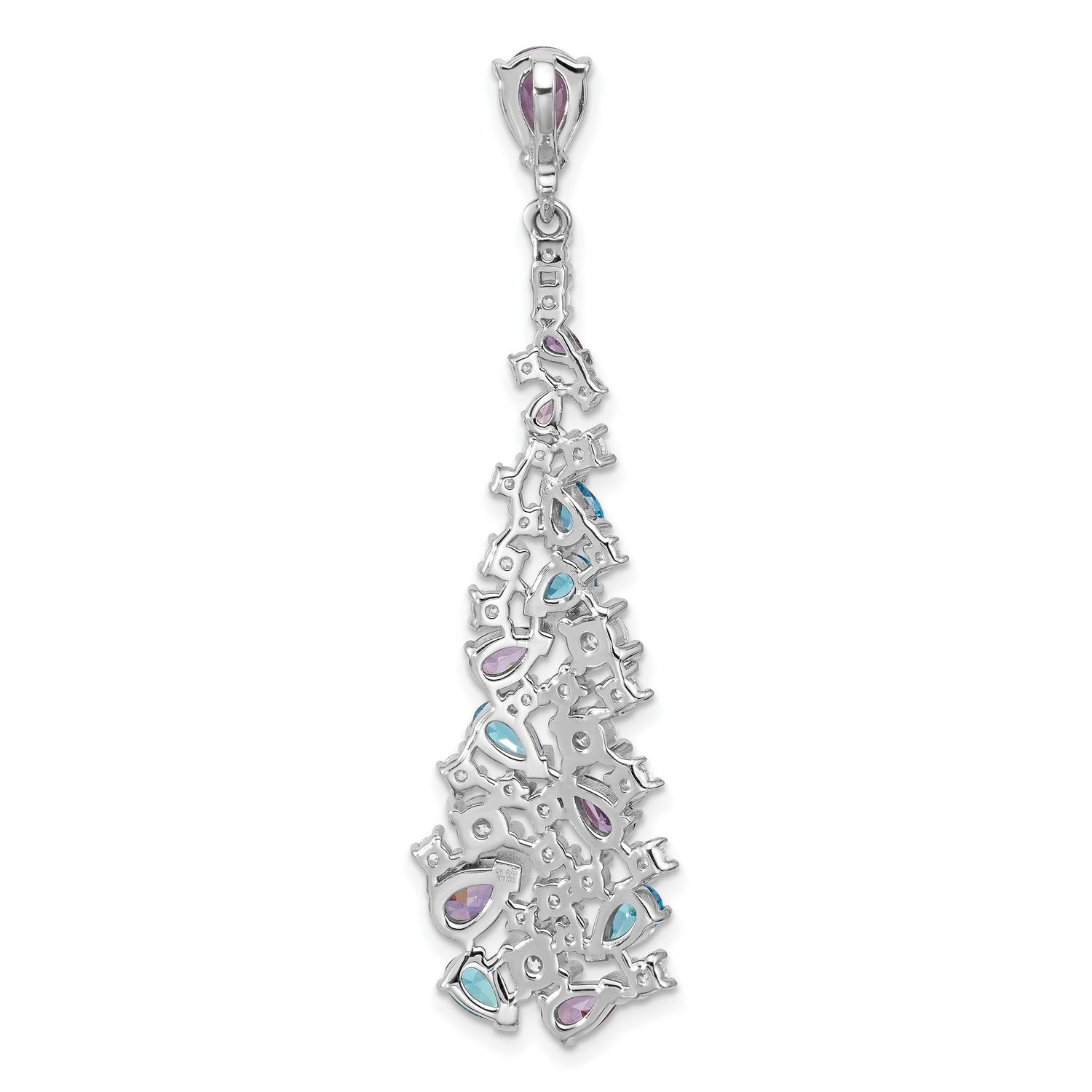 Sterling Silver Pendant with Amethyst, Blue Topaz and Cubic Zirconia, Teardrop Cascading Design