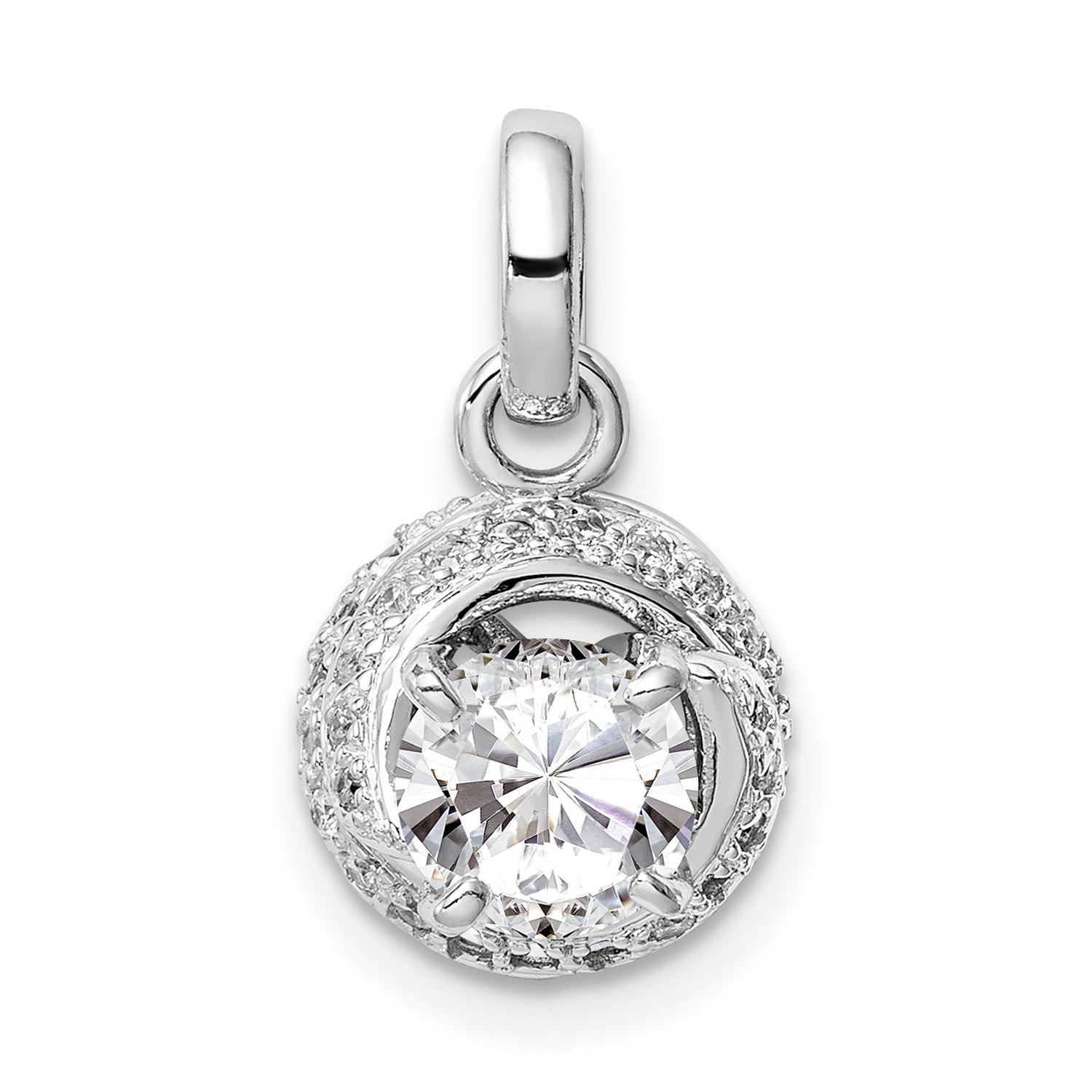 Sterling Silver Pendant with Cubic Zirconia Center, Twist Halo Design for Women