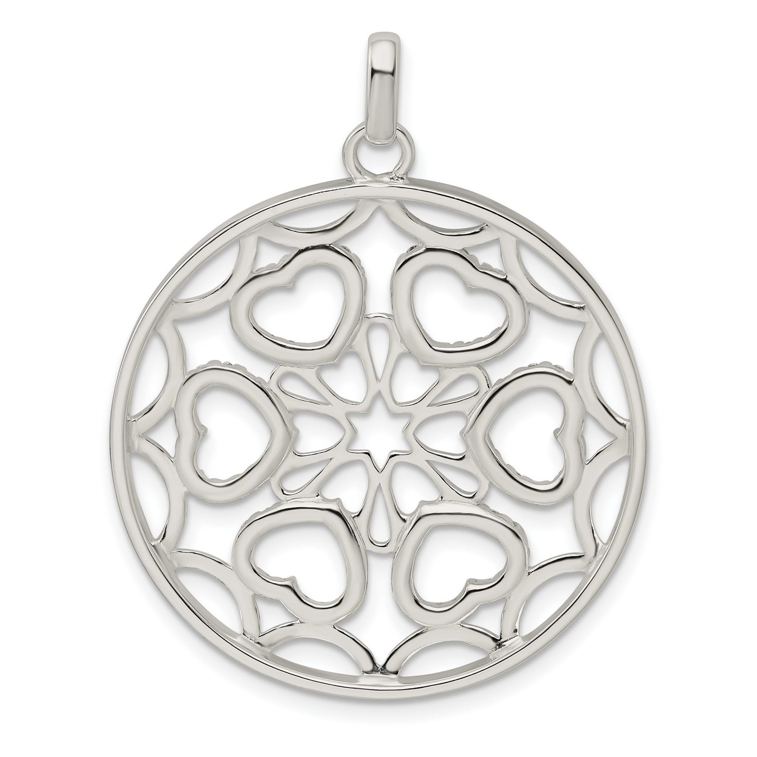 Sterling Silver Pendant with Cubic Zirconia, Circular Filigree and Heart Motifs, Star Design
