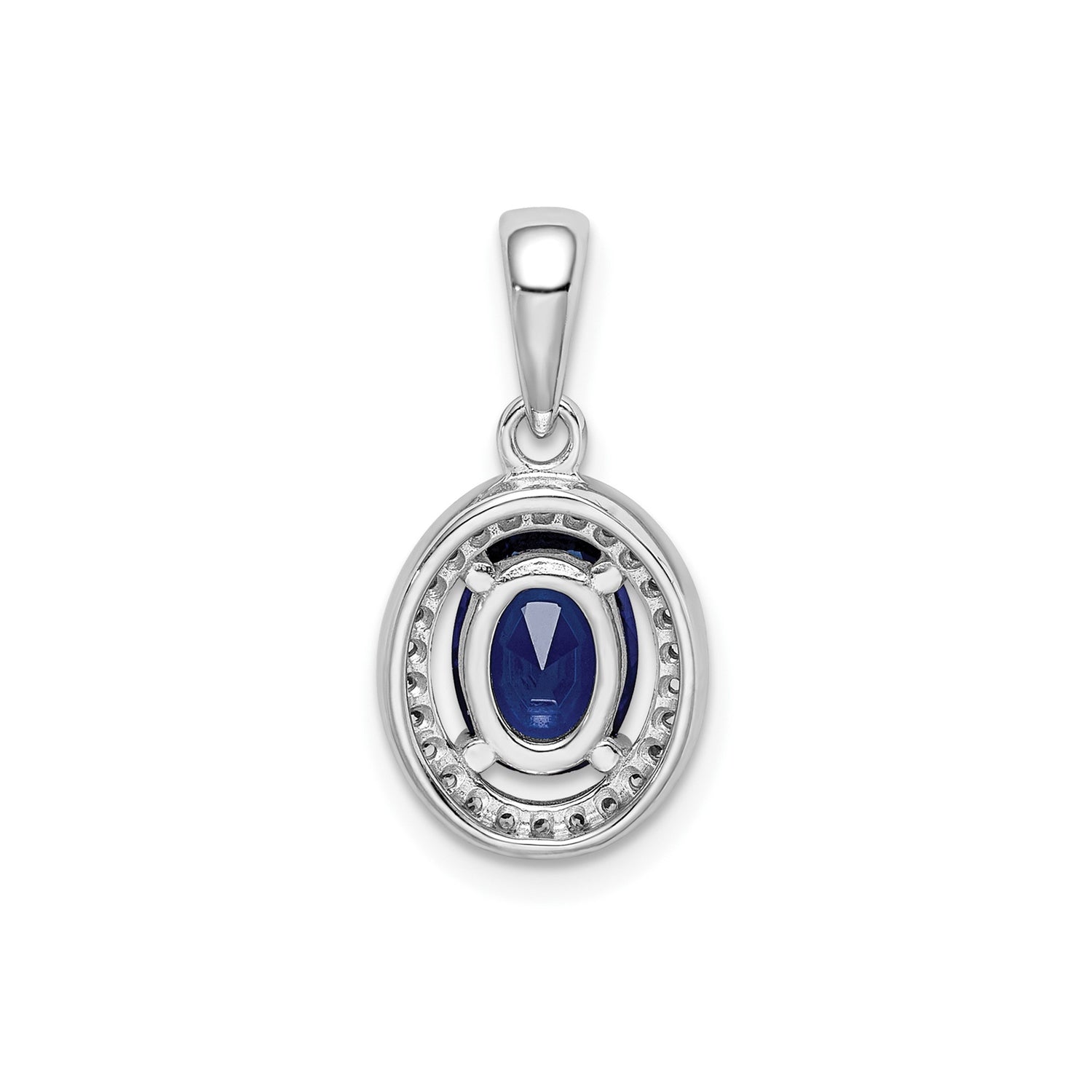 Sterling Silver Pendant with Cubic Zirconia, Oval Deep Blue Gemstone, Halo Style for Women