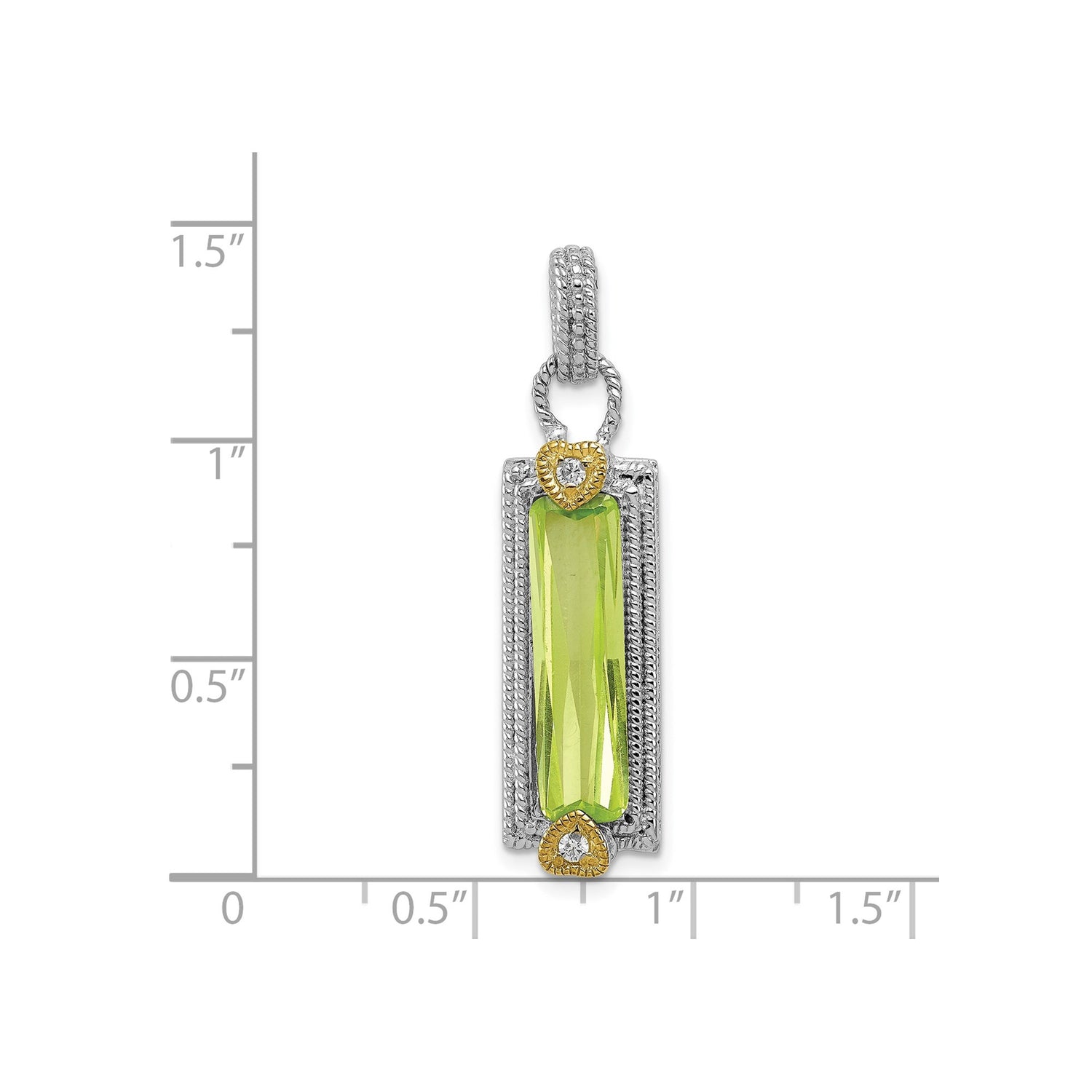 Sterling Silver Pendant with Rectangular Green Cubic Zirconia and Gold Tone Heart Accents