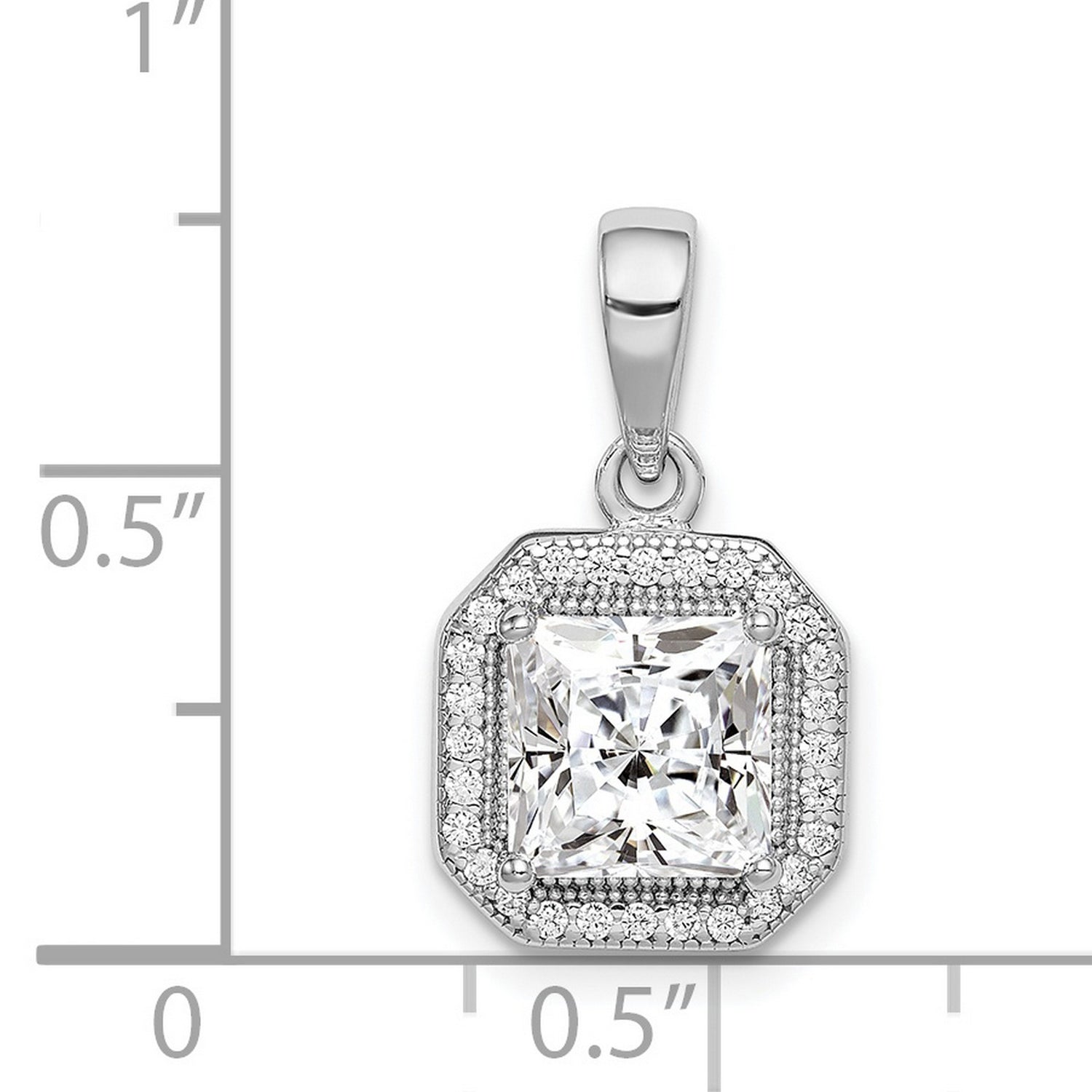 Sterling Silver Pendant with Square Cubic Zirconia Center and Double Halo Setting