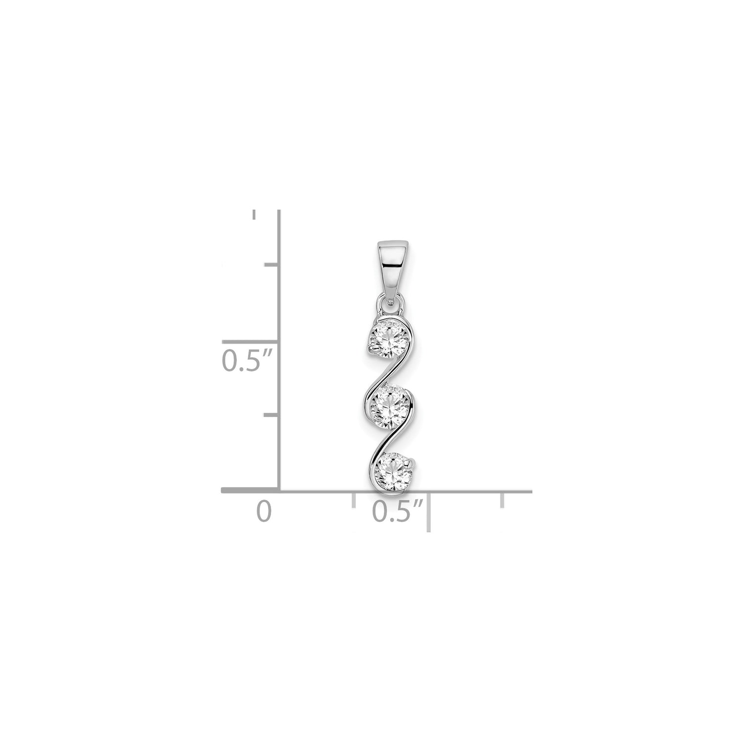 Sterling Silver Pendant with Three Cubic Zirconia Stones in S-Curve Design