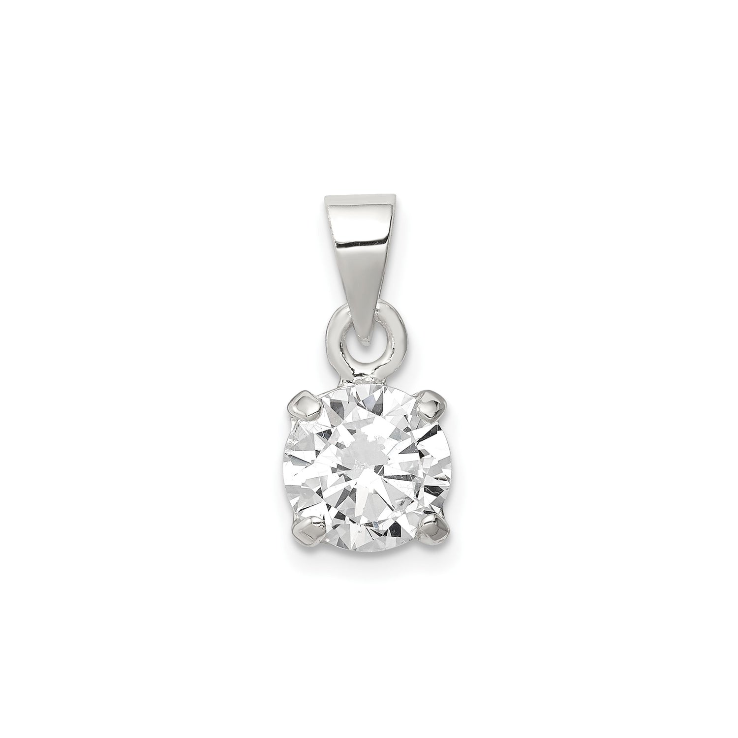 Sterling Silver Solitaire Pendant with Cubic Zirconia in Prong Setting, Minimalist Charm for Women