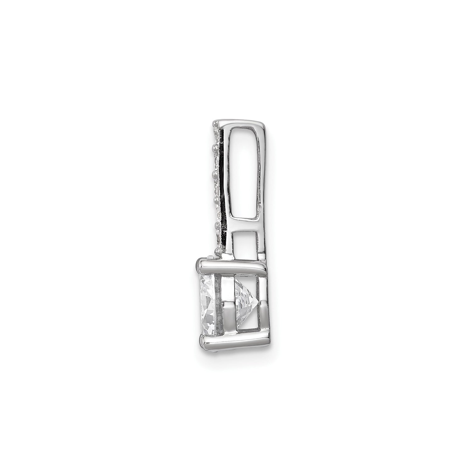 Sterling Silver Solitaire Pendant with Round Cut Cubic Zirconia and Vertical Accents