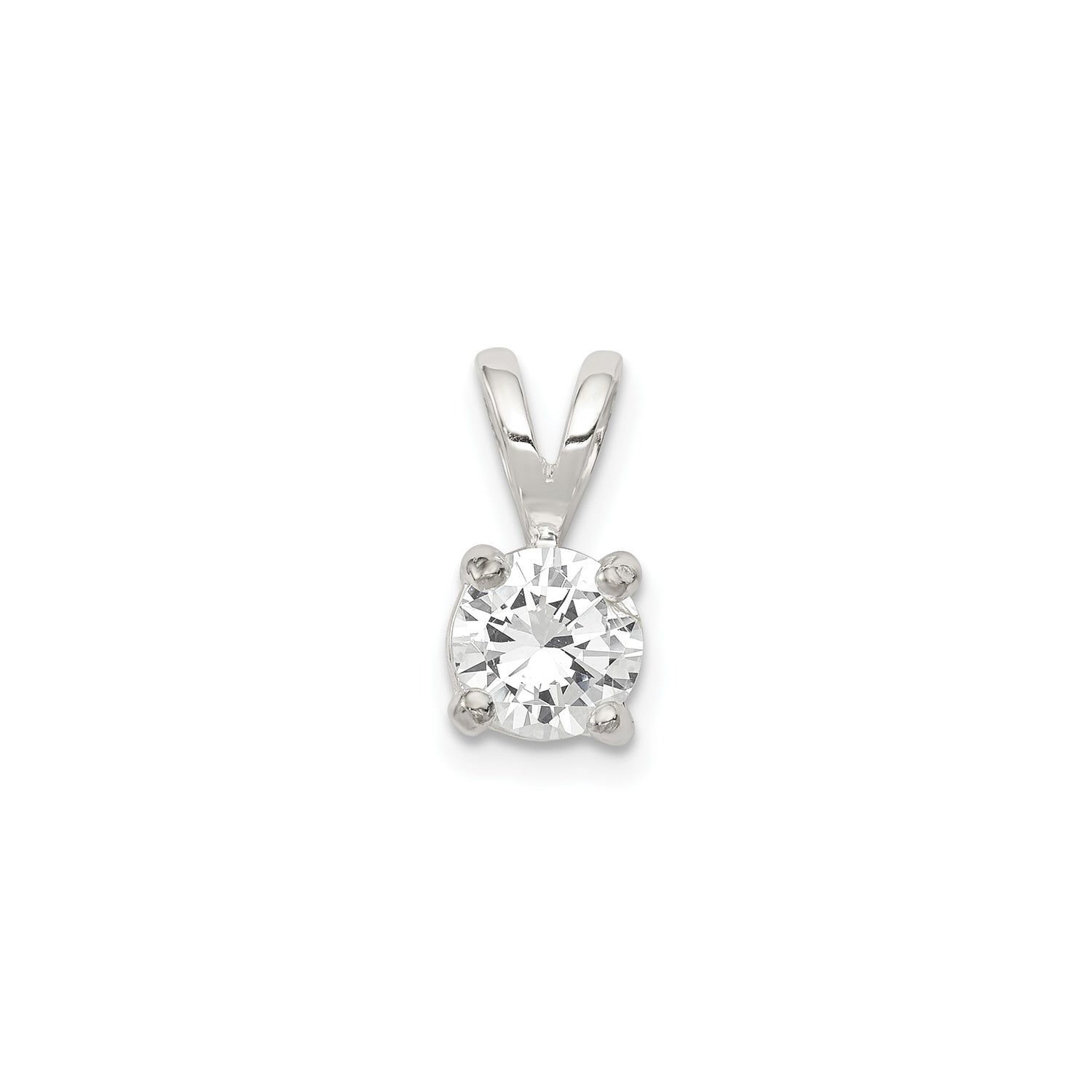 Sterling Silver Solitaire Pendant with Round Cut Cubic Zirconia in Four Prong Setting
