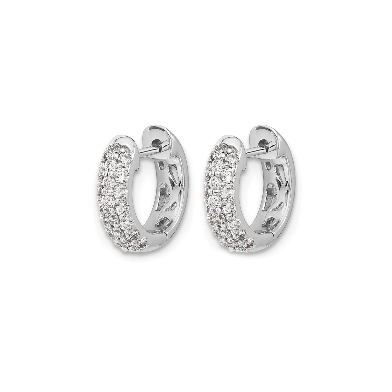 Enjoy The Beauty Of Small White Gold Hoops With A Contemporary Pav Finish That Enhances Each Curve And Corner. These High-End Hoop Earrings Reflect The Unforgettable Charm Of White Gold Bridal Earrings While Remaining Perfectly Suited To Fashion Earrings Worn In Everyday Moments. Slip Into These Women's Pav Diamond Hoops To Add Shine To Business Attire Or Elevate Evening Wear With Their Sparkling Finish.