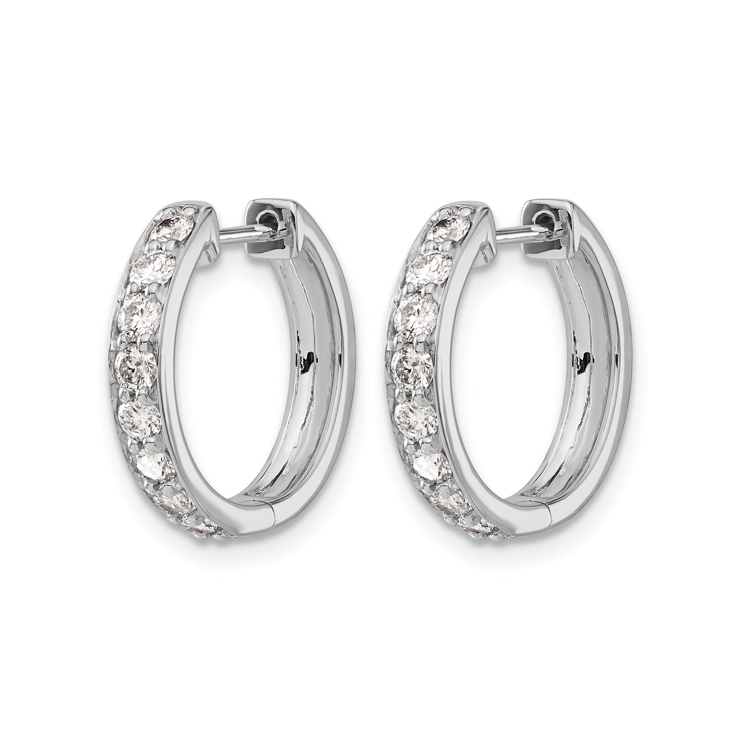 10k White Gold Hoop Earrings with Round Cut Clear Stones, Channel Setting, Polished Finish