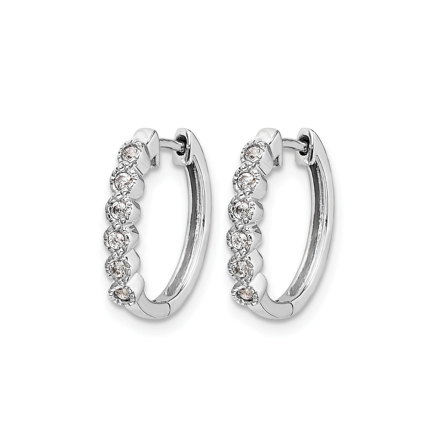 Highlighting diamond shine in a white gold setting, these refined small gold hoops make an excellent addition to any collection of ladies earrings. The bezel set design ensures a sleek profile, while the brilliance of round cut diamond hoops draws just the right amount of attention. Made with durable 10k white gold, they reflect the premium craftsmanship found in the finest white gold jewelry. Elevate your jewelry box with these elegant huggie earrings, designed for long-lasting beauty and effortless wear.