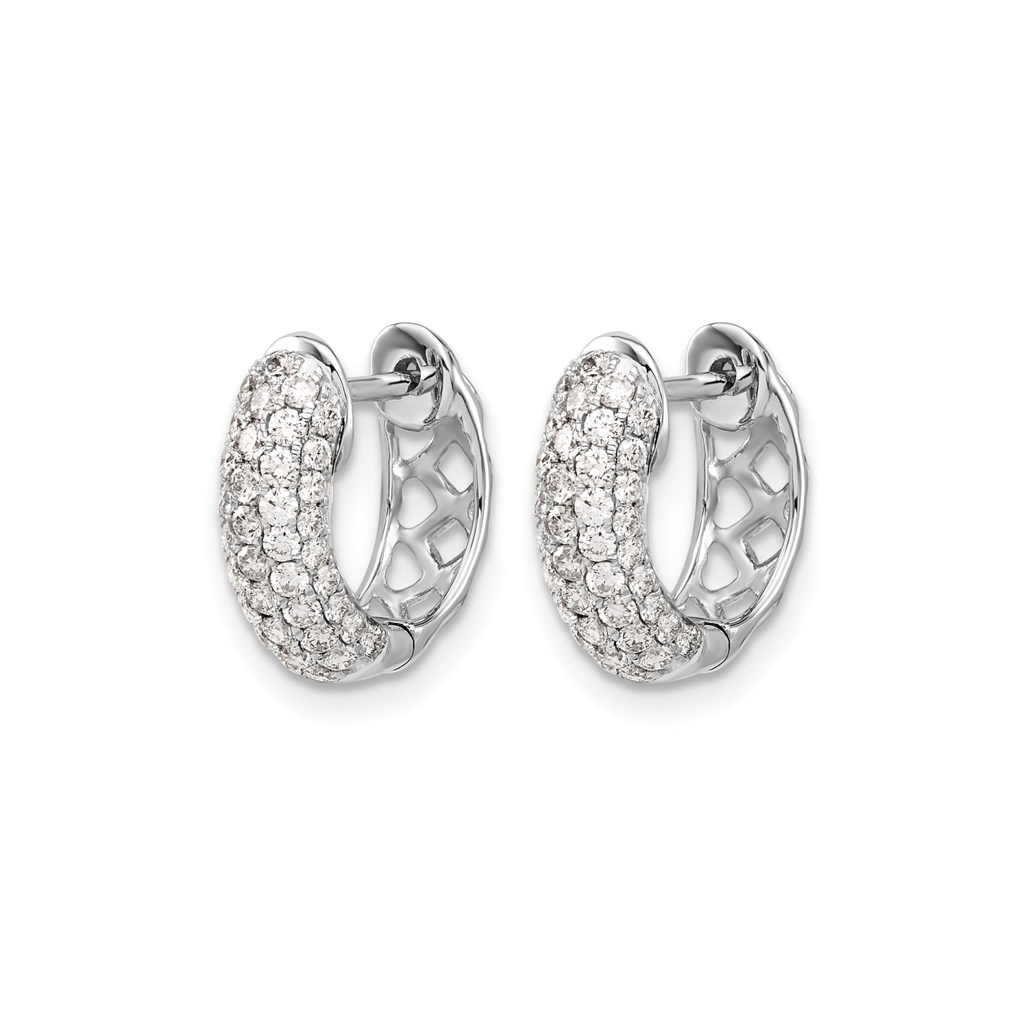 The refined diamond hoop earrings transition effortlessly into formal jewelry or everyday wear. From anniversary hoop earrings to classic white gold hoops for bridal occasions, these fine accessories elevate your style with elegance and poise. Choose these diamond huggie hoops for a sparkling addition to your collection of gold earrings you'll treasure each time you wear them.