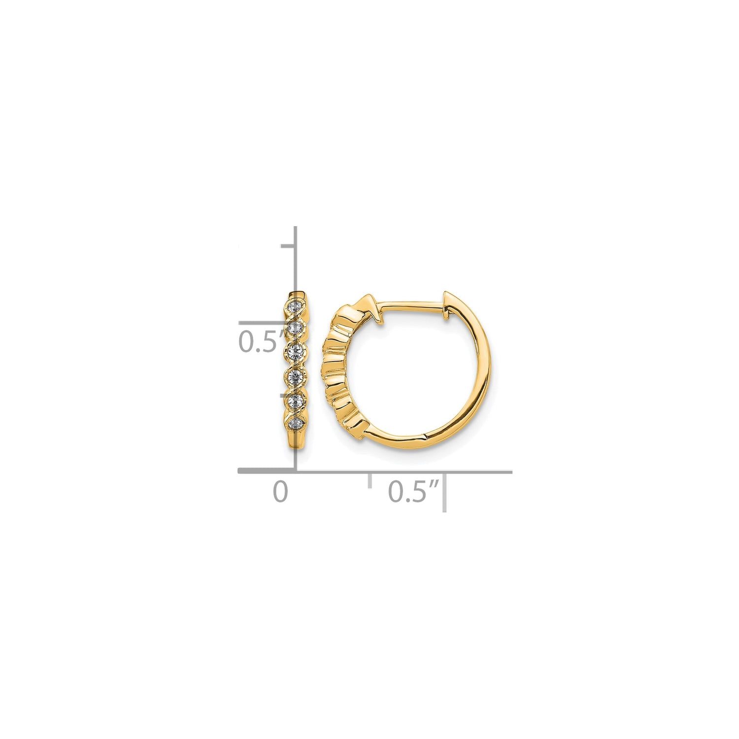10k Yellow Gold Hoop Earrings with Round Cut White Diamonds, Shared Prong Setting, Small Hinged Style