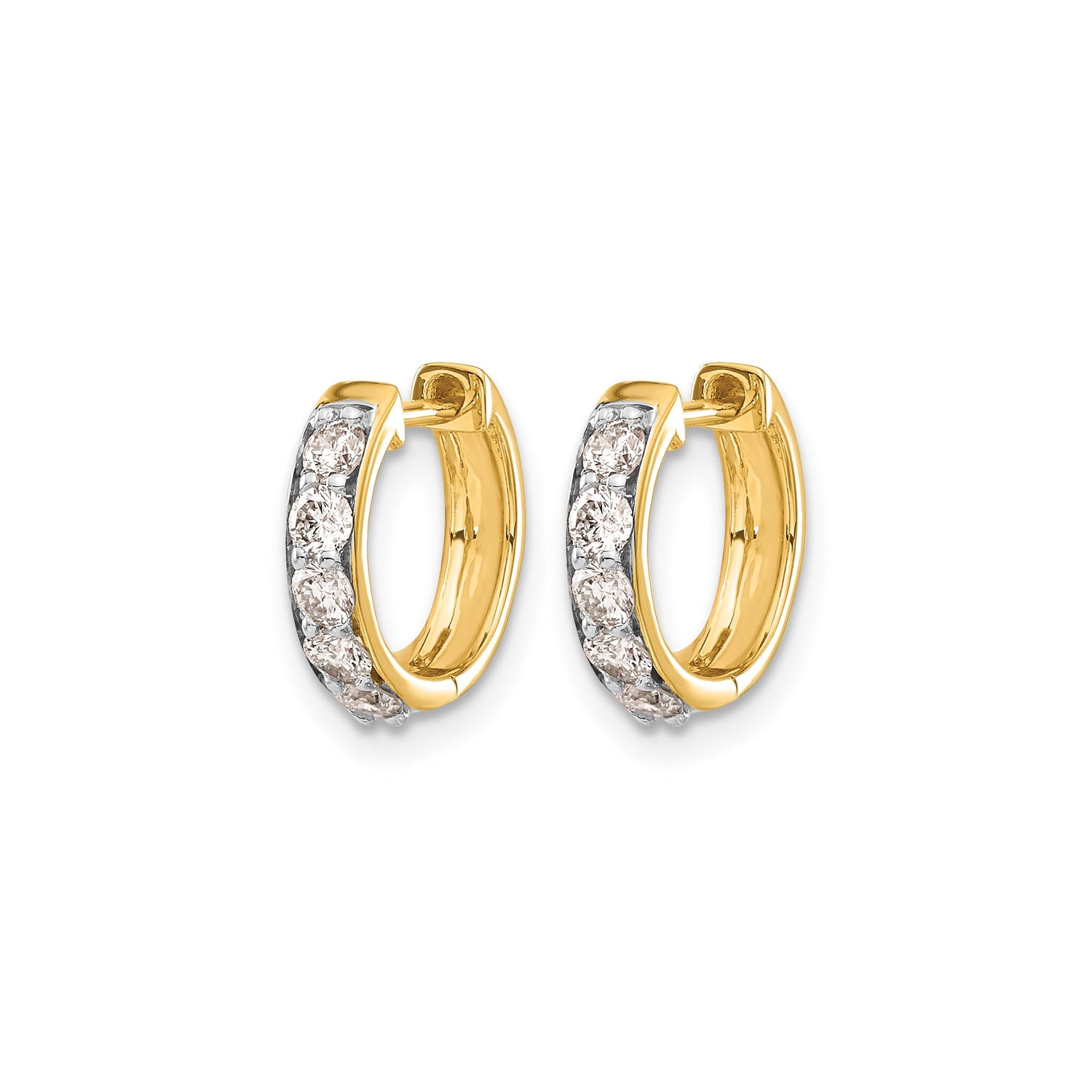 10k Yellow Gold Hoop Earrings with Round White Gemstones, Channel Set, Lightweight Hinged Design