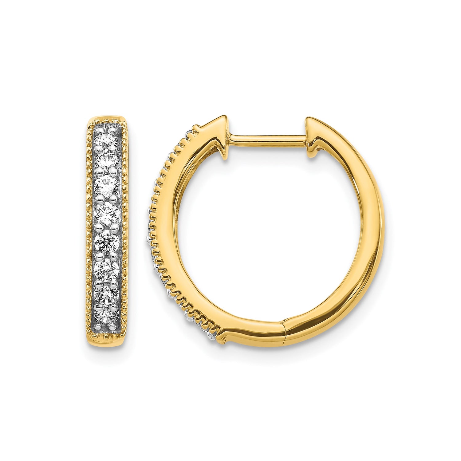 10k Yellow Gold Hoop Earrings with White Diamonds, Channel Set, Milgrain Detailing