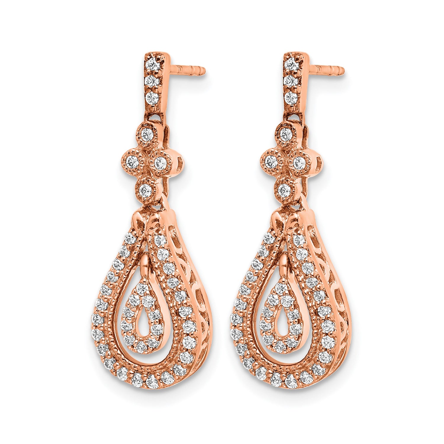 14k Rose Gold Dangle Earrings with Diamond Teardrop and Floral Openwork Design