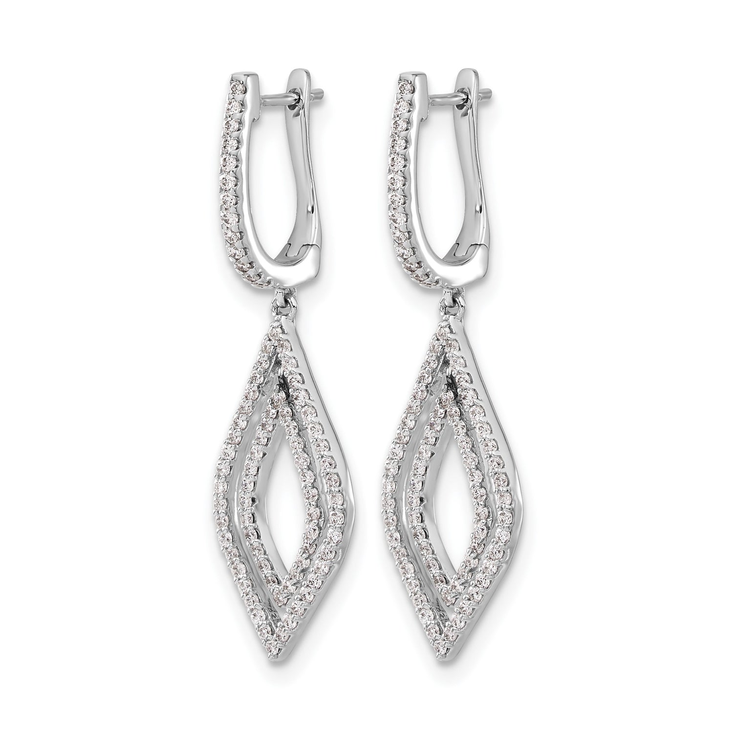 14k White Gold Dangle Earrings with Diamond Double Marquise Open Drops