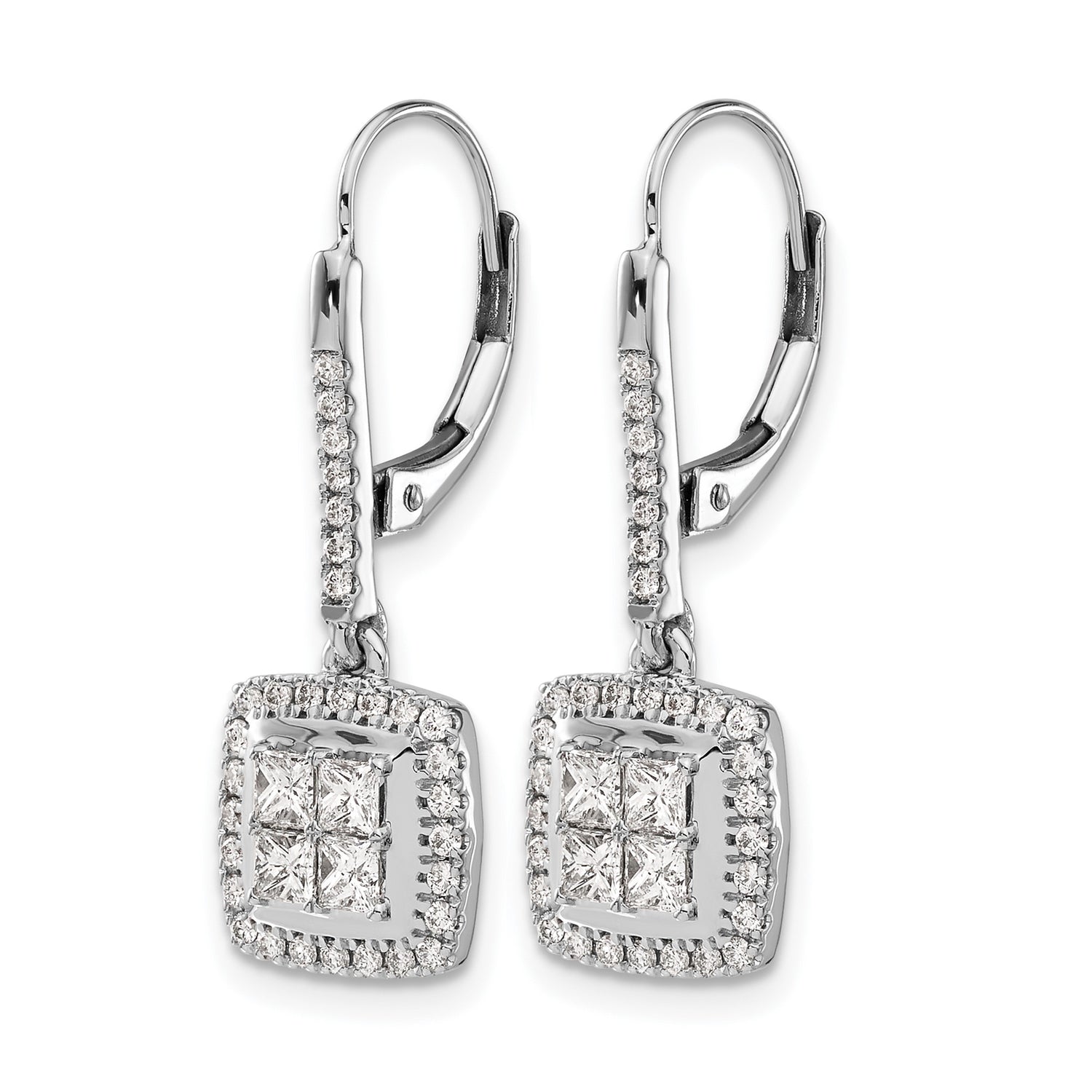 14k White Gold Dangle Earrings with Diamond Halo Clusters and Pave Leverback Design