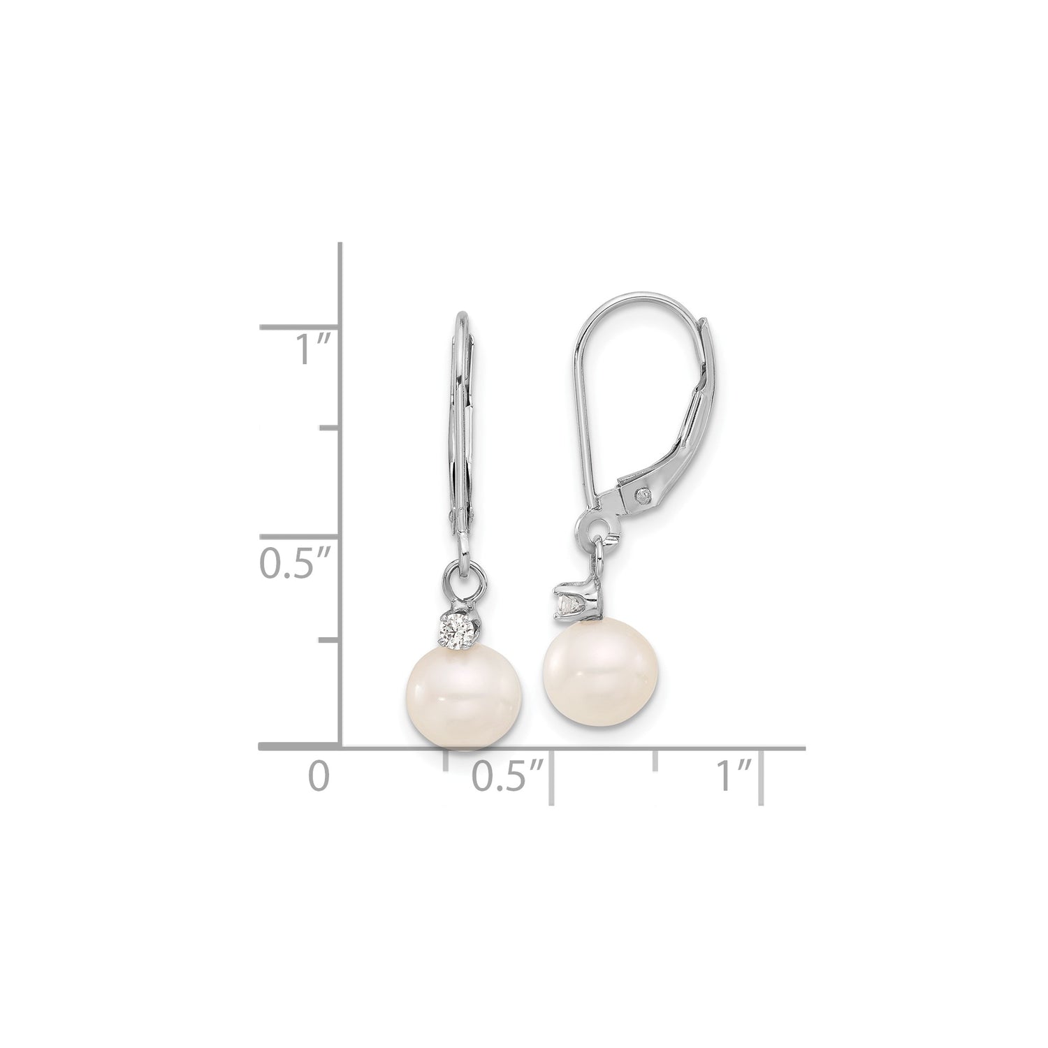 14k White Gold Dangle Earrings with White Pearl and Diamond Accents, Drop Style for Women