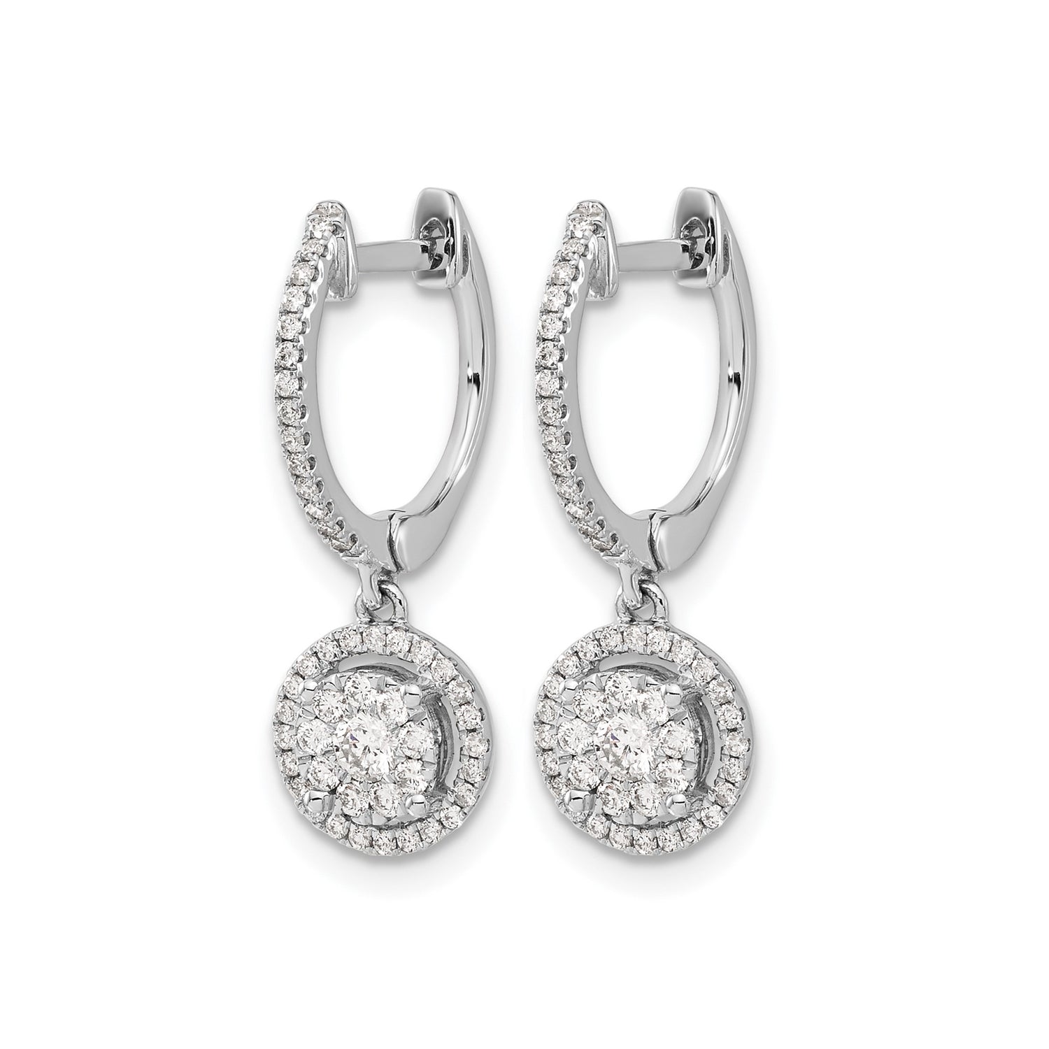 Surround Yourself In The Allure Of Sparkling Diamond Craftsmanship. These Dangle Earrings Combine The Soul Of Classic Hoop Drops With The Modern Edge Of Stylish Luxury Drop Earrings. The Halo Design Enhances The Brilliance Of Each Stone, Offering A Brilliant Contrast Against The High Polish White Gold. This Is Modern Jewelry Defined, With Each Element Contributing To The Overall Impression Of Elevated Elegance.