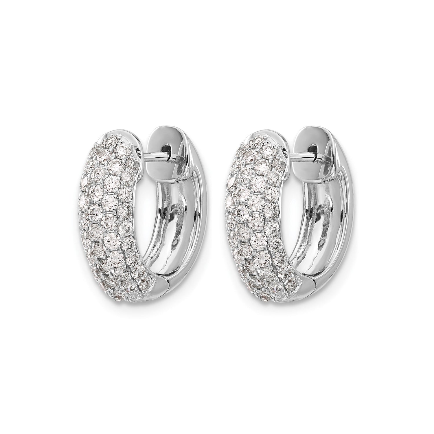 14k White Gold Diamond Hoop Earrings, Round Cut Multi Row Pave Huggies for Women