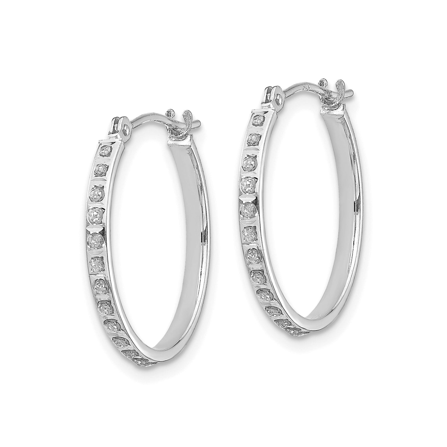 Experience the brilliance of 14k white gold hoops designed to bring effortless charm to your daily style and formal attire alike. These elegant gold hoop earrings offer refined sophistication with sparkling cubic zirconia set in a secure channel setting. Every detail highlights the beauty of simple white gold hoops that blend classic elegance with modern hoop earring design for a truly polished look. Crafted to suit both everyday wear and special events, these timeless white gold hoops add radiance to any outfit. The lightweight gold hoops feature a sleek silhouette that hugs the ear comfortably while providing shimmer from round cut zirconia earrings. Whether you're styling for brunch or a black-tie affair, these women's hoop earrings bring graceful allure through subtle shine and quality craftsmanship. These fashion white gold hoops exemplify wearable gold jewelry at its finest. The zirconia channel set earrings showcase dazzling brilliance that enhances their minimal yet luxe appeal, making them standout choices for those seeking timeless jewelry style. With medium size gold hoops designed for all-day ease, the combination of lightweight comfort and diamond cut detailing makes these earrings a staple in any jewelry collection. Perfect as wedding hoop earrings or daily earrings you can rely on, their understated sparkle reflects sophistication. The symmetry of round cubic zirconia earrings nestled in sleek gold hoops transforms these into formal white gold hoops just as fitting for day-to-night wear. Let these sparkle earrings elevate your personal style with every wear.