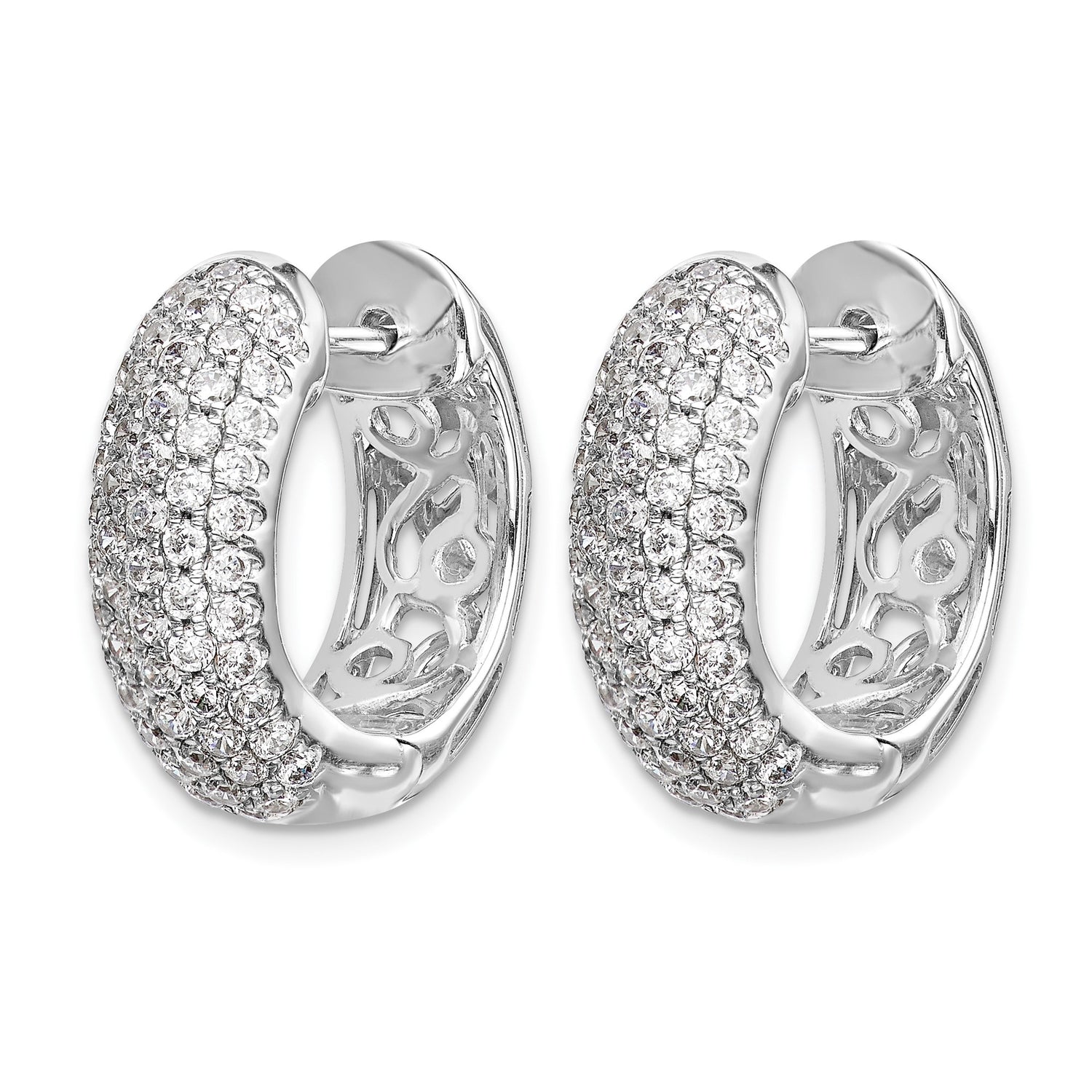 14k White Gold Hoop Earrings with Pavé-Set Round Diamonds, Wide Huggie Style for Women
