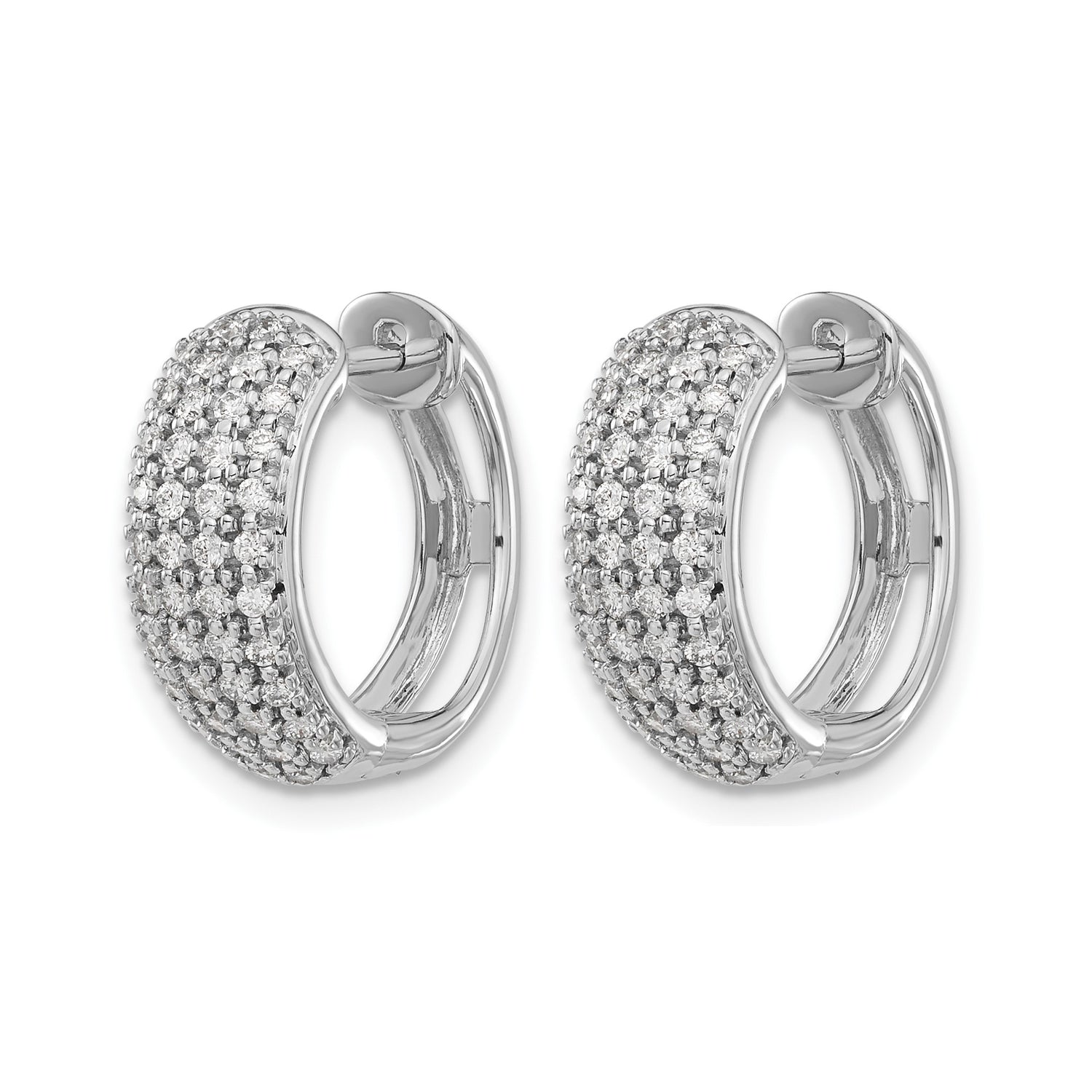 14k White Gold Huggie Earrings with Pavé Set Round Diamonds, Wide Sparkling Hoop Design