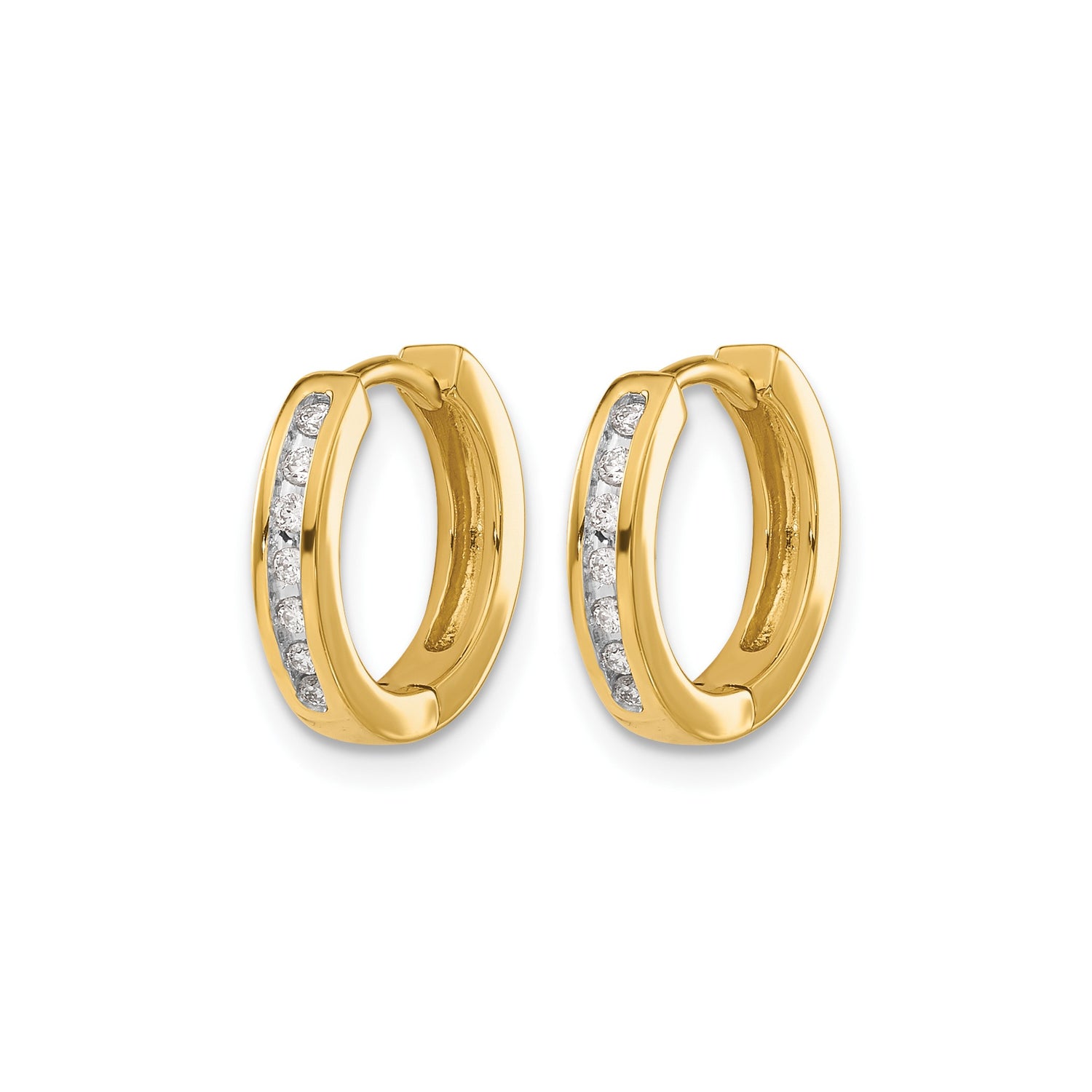 14k Yellow Gold Hoop Earrings with Channel-Set Diamonds, Polished Lightweight Design for Women