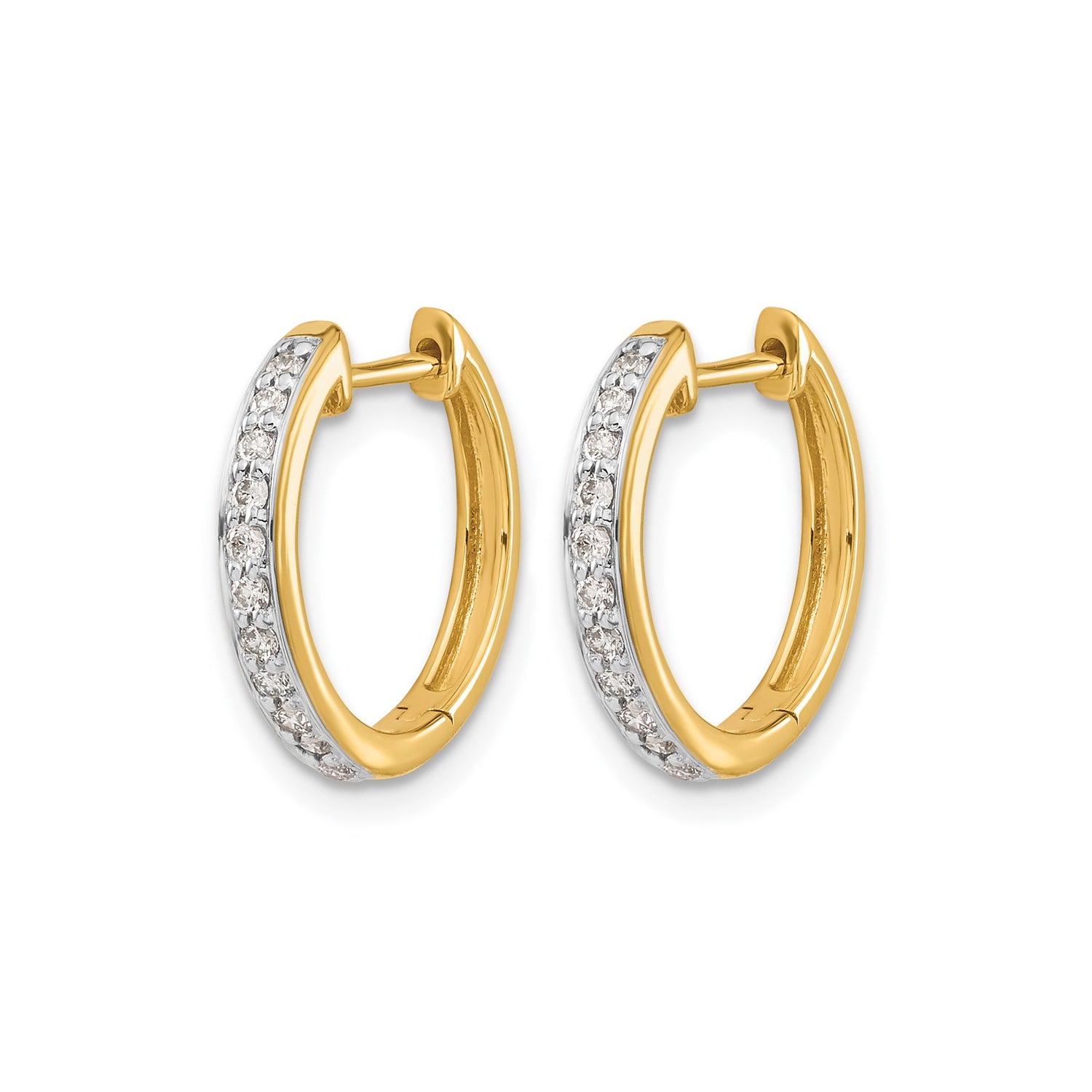 Designed As A Versatile Pair Of 14k Gold Fashion Earrings, These Stylish Womens Hoop Earrings Transition Seamlessly From Boardroom To Evening Outings. The Round Cut Diamonds Add Subtle Sparkle Without Overpowering, While The Polished Gold Hoops Deliver A Touch Of Sophistication. Whether You Prefer Modern Gold Hoops Or Classic Yellow Gold Hoops, This Timeless Accessory Complements A Wide Range Of Personal Styles.