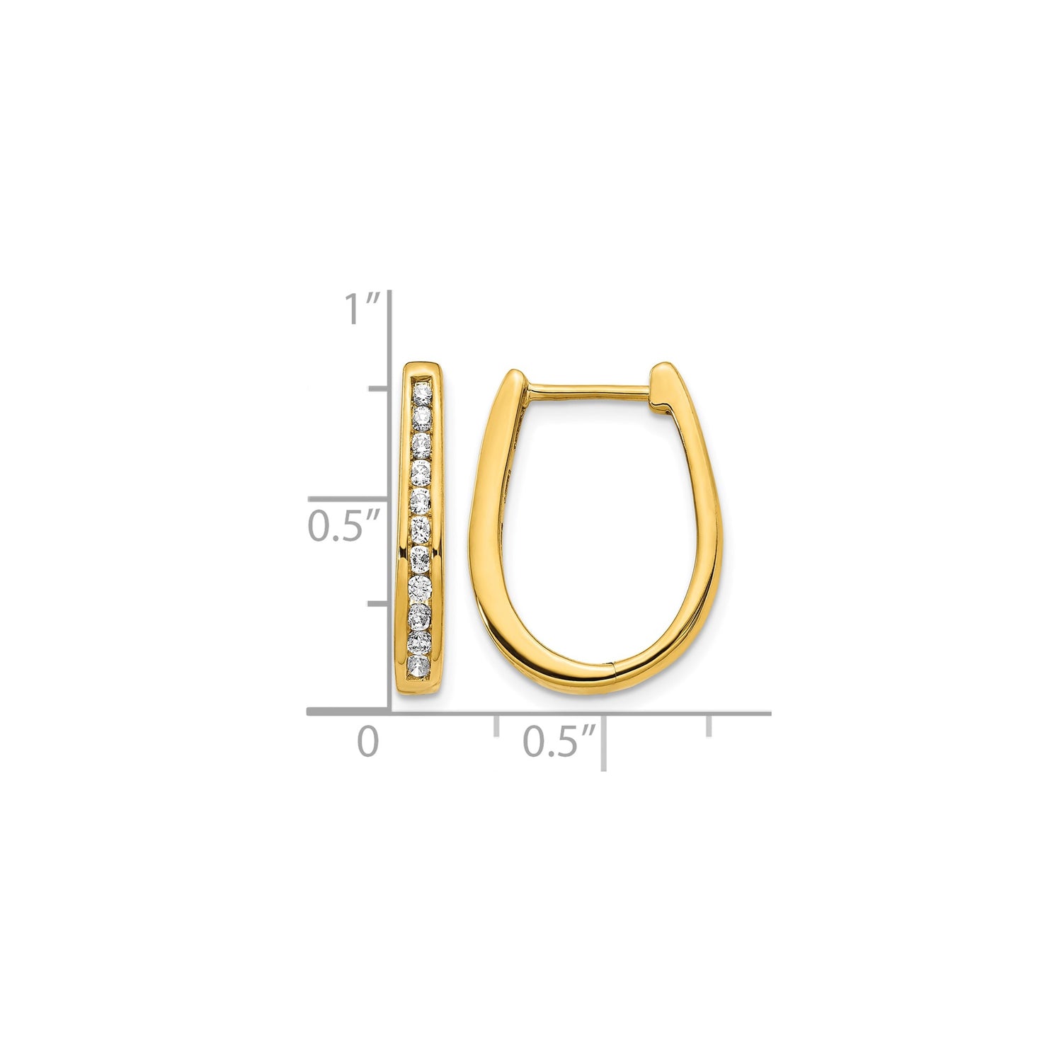 14k Yellow Gold Hoop Earrings with Channel Set Round Diamonds, Elongated Oval Design