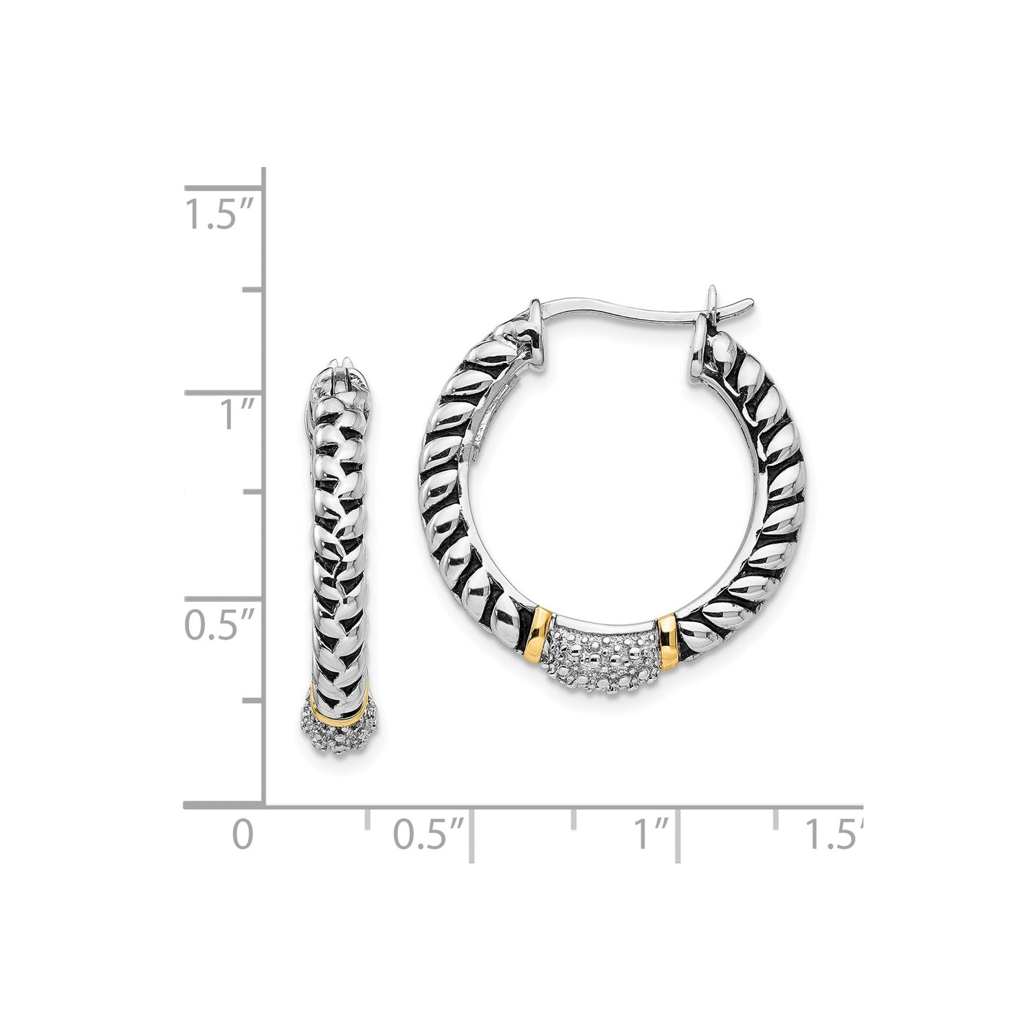 Add Striking Sophistication to Your Jewelry Collection with These 14k Two-Tone Hoop Earrings That Merge Contemporary Design with Timeless Appeal. Crafted with a Sleek Chain Texture and an Eye-Catching Mix of Gold Accents and Silver Finish, These Modern Stylish Hoop Earrings Provide Just the Right Touch of Sparkle and Structure for Any Look. Whether You're Dressing Up for a Special Dinner or Enhancing an Everyday Ensemble, the Pav Detail Silver Hoops Deliver Instant Elegance and Shine.