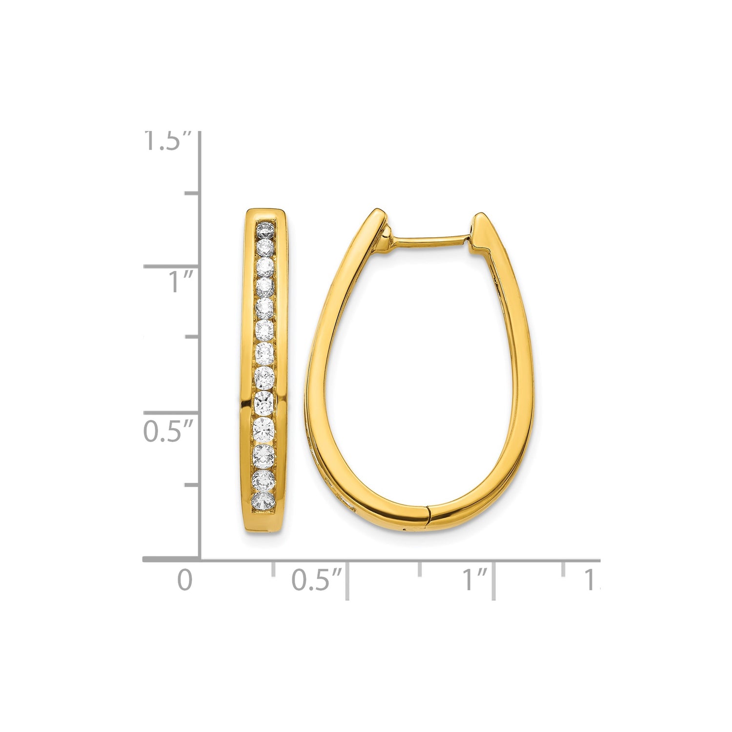 14k Yellow Gold Oval Hoop Earrings with Channel Set Diamonds, Polished Finish, Hinged Clasp