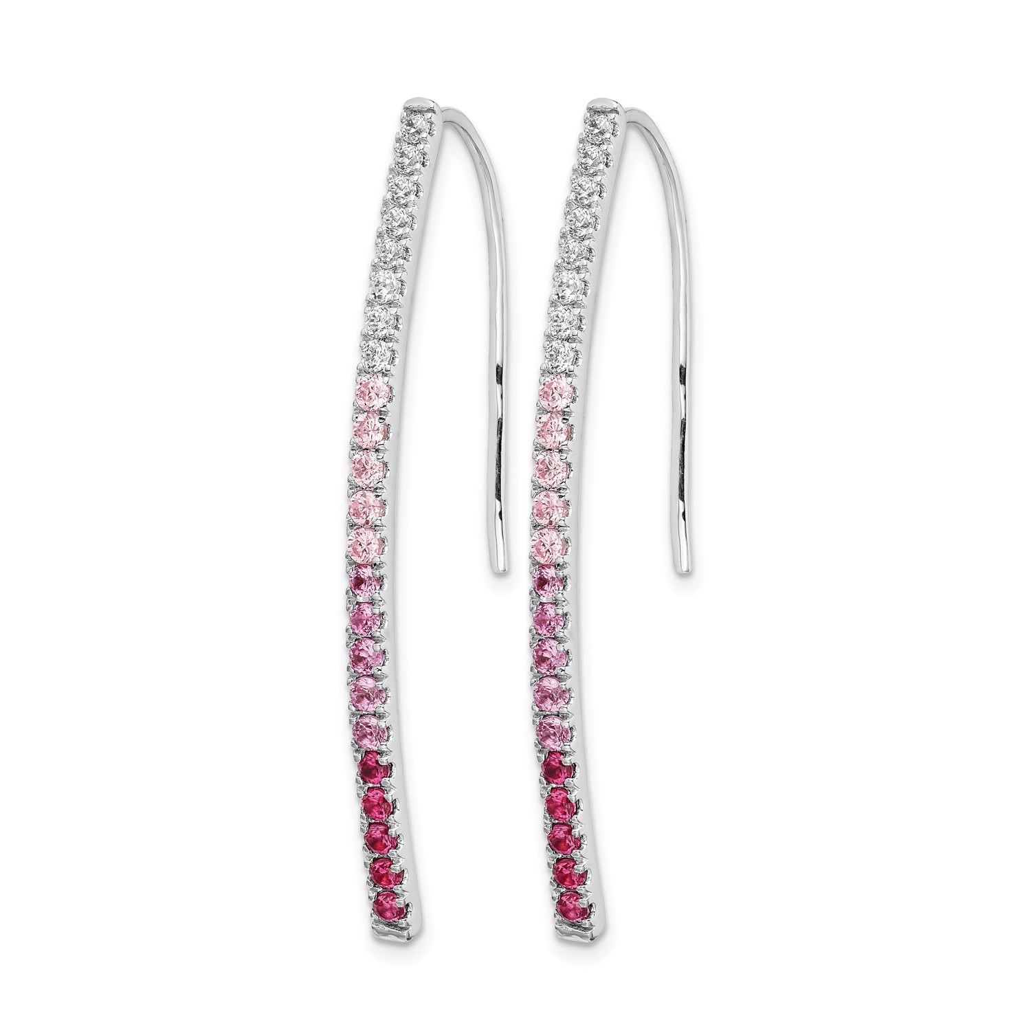 14k White Gold Threader Earrings with Pink and White Sapphire, Long Linear Drop Design