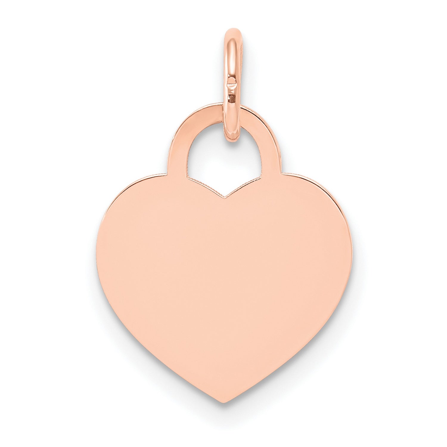 14k Rose Gold Heart Pendant Charm with Lock-Inspired Top, Polished Engravable Design