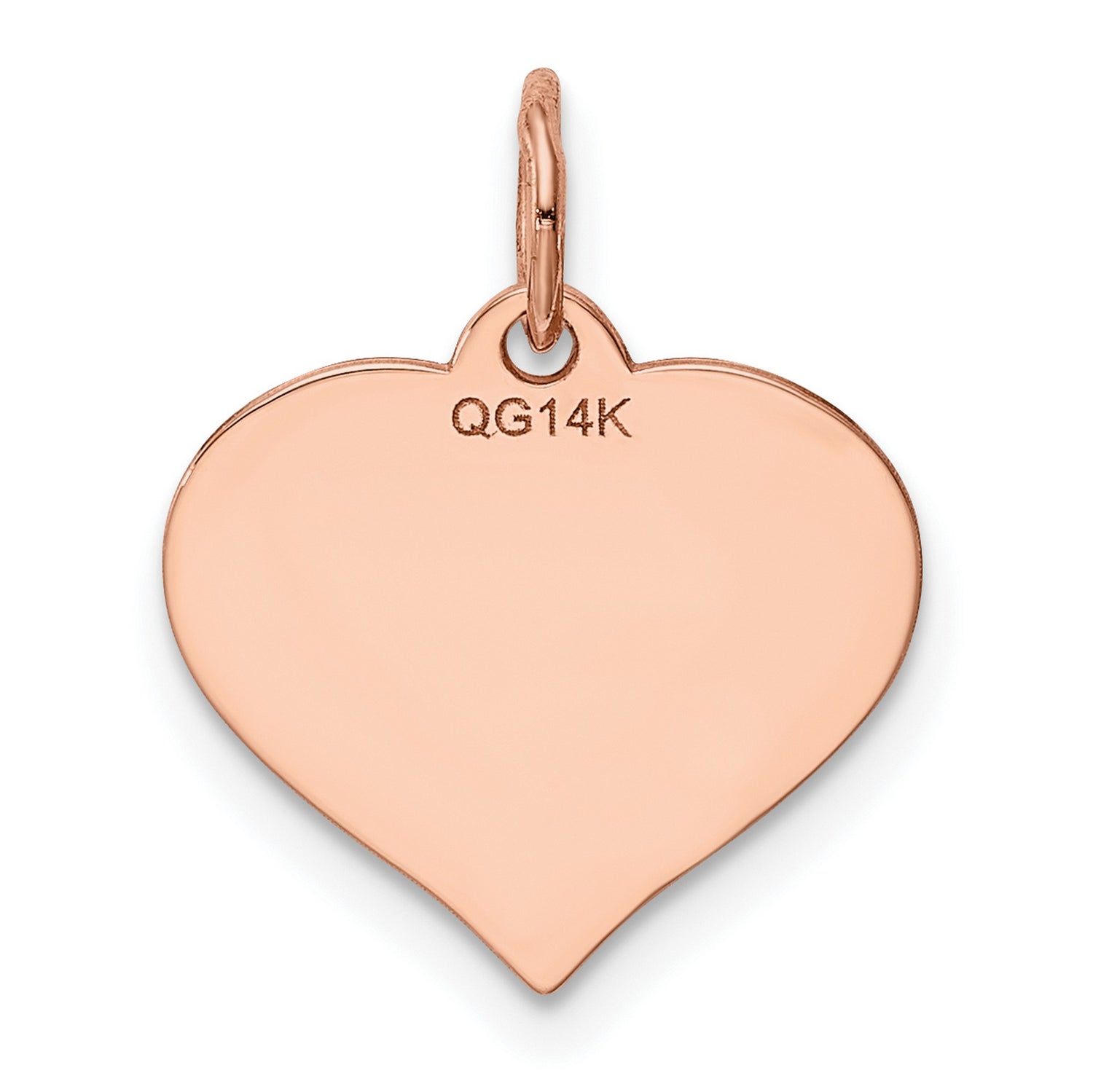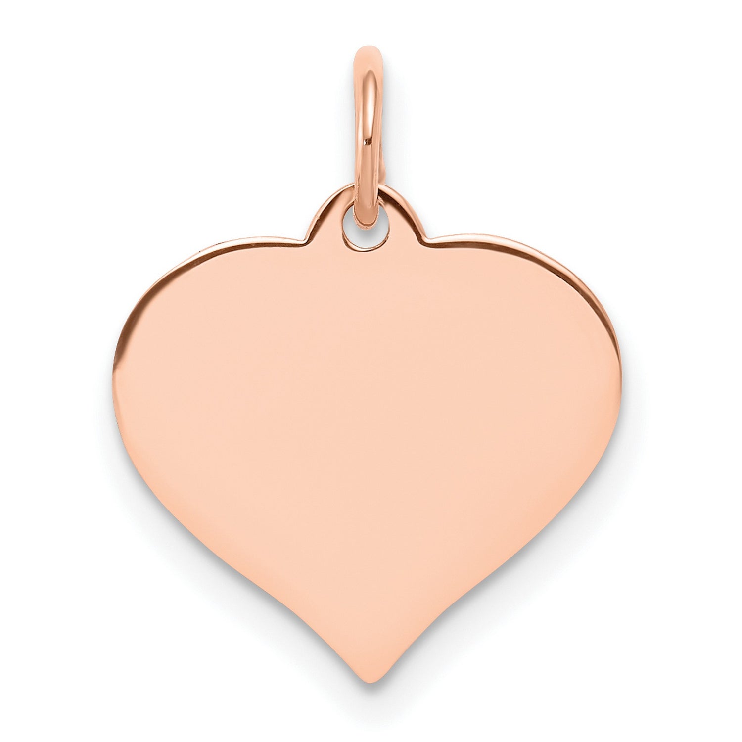 14k Rose Gold Heart Pendant, Polished Flat Charm with Smooth Engravable Surface for Women
