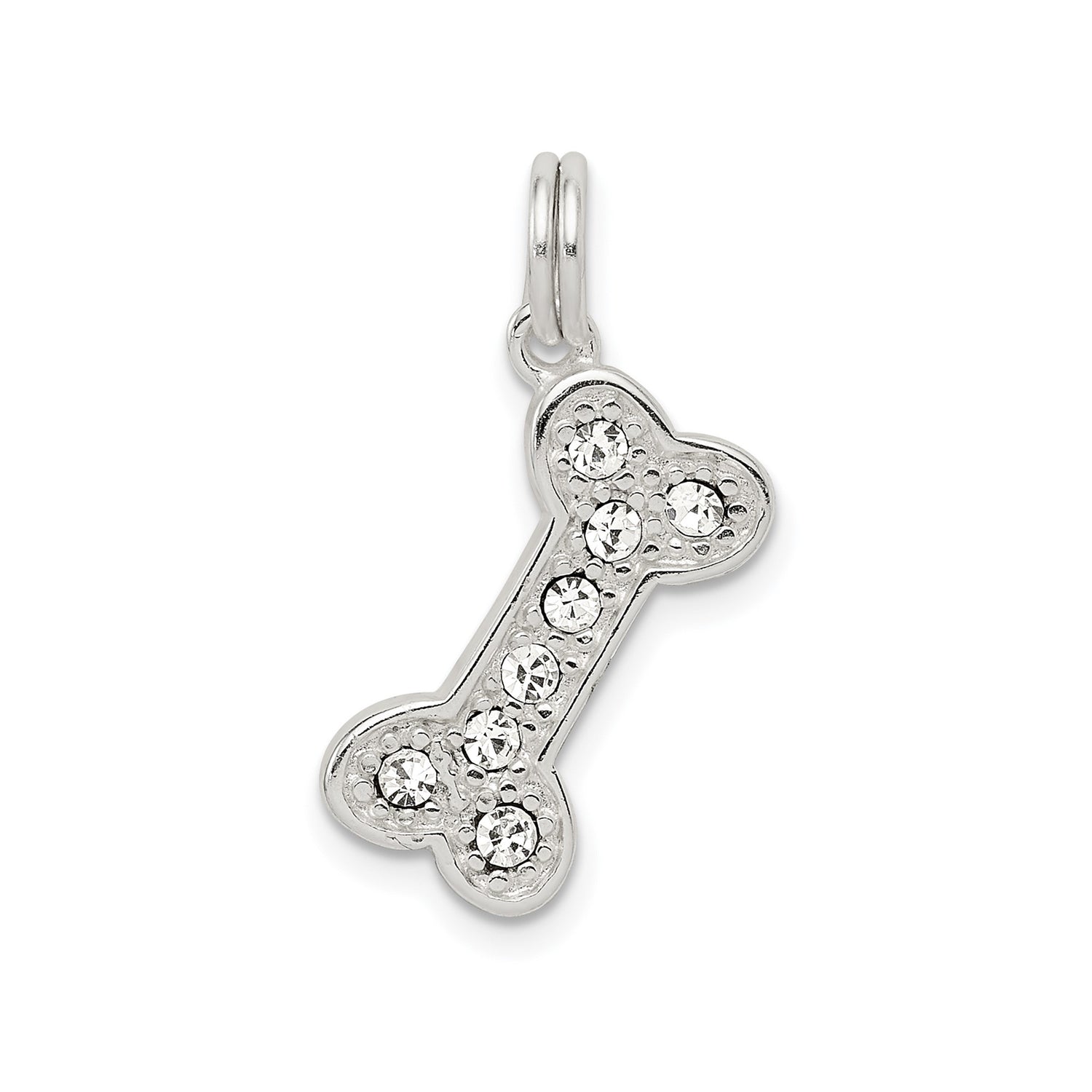 Sterling Silver Bone Pendant Charm with Cubic Zirconia, Dog Mom Jewelry for Pet Lovers