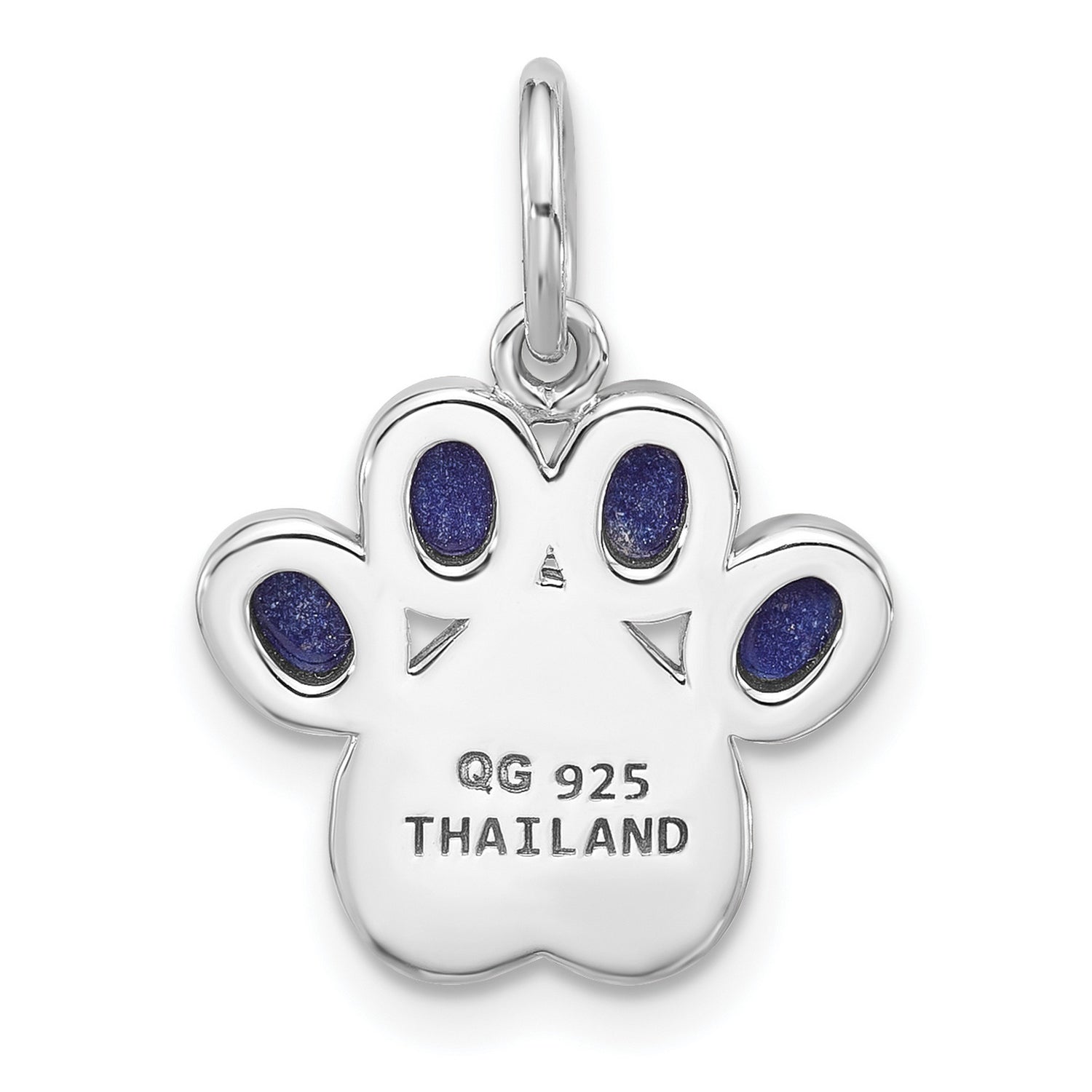 Sterling Silver Paw Print Pendant with Lapis and Purple Enamel, Dog Memorial Jewelry