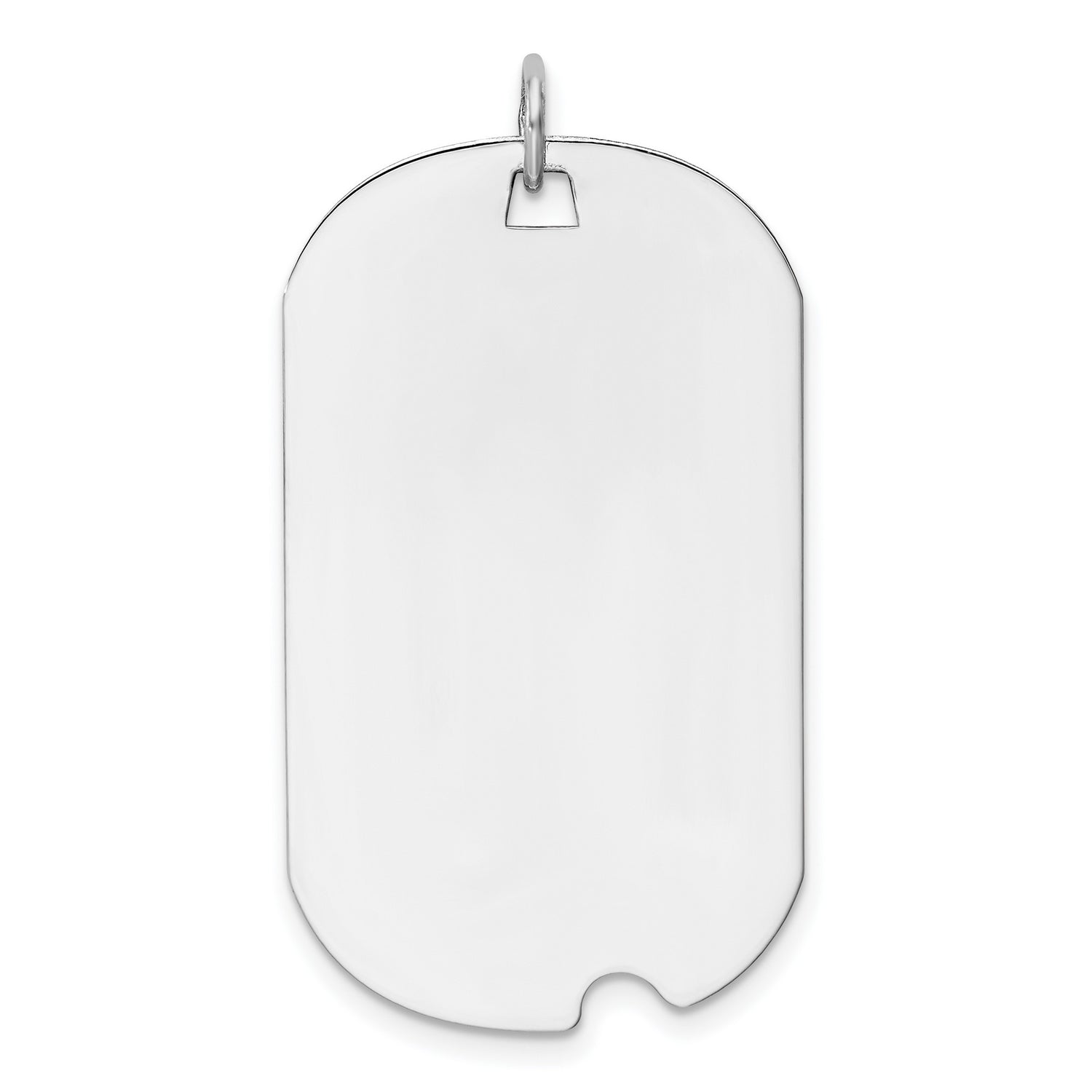 14k White Gold Dog Tag Pendant, Plain Polished Engravable Military Style Charm