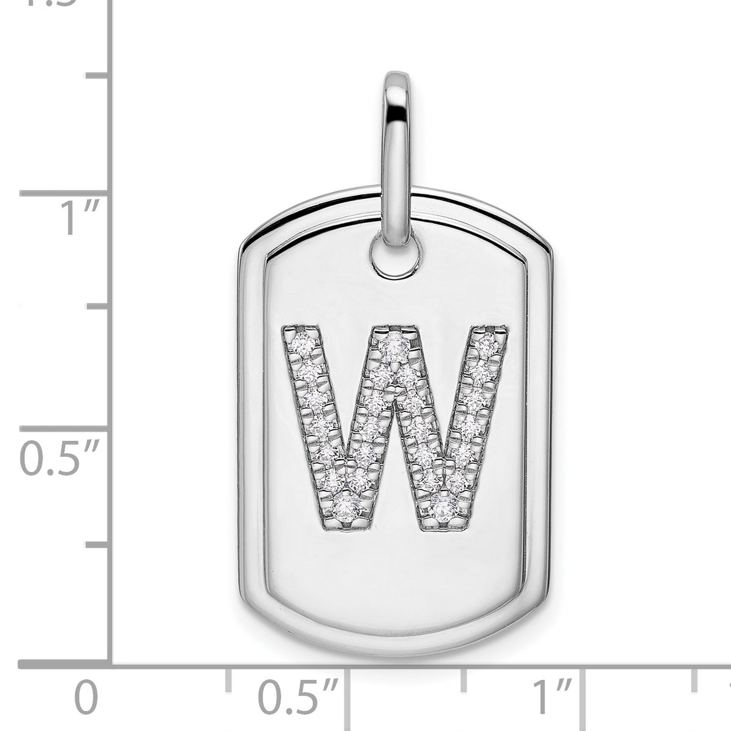 14k White Gold Dog Tag Pendant with Diamond Accent, Letter W Initial Charm