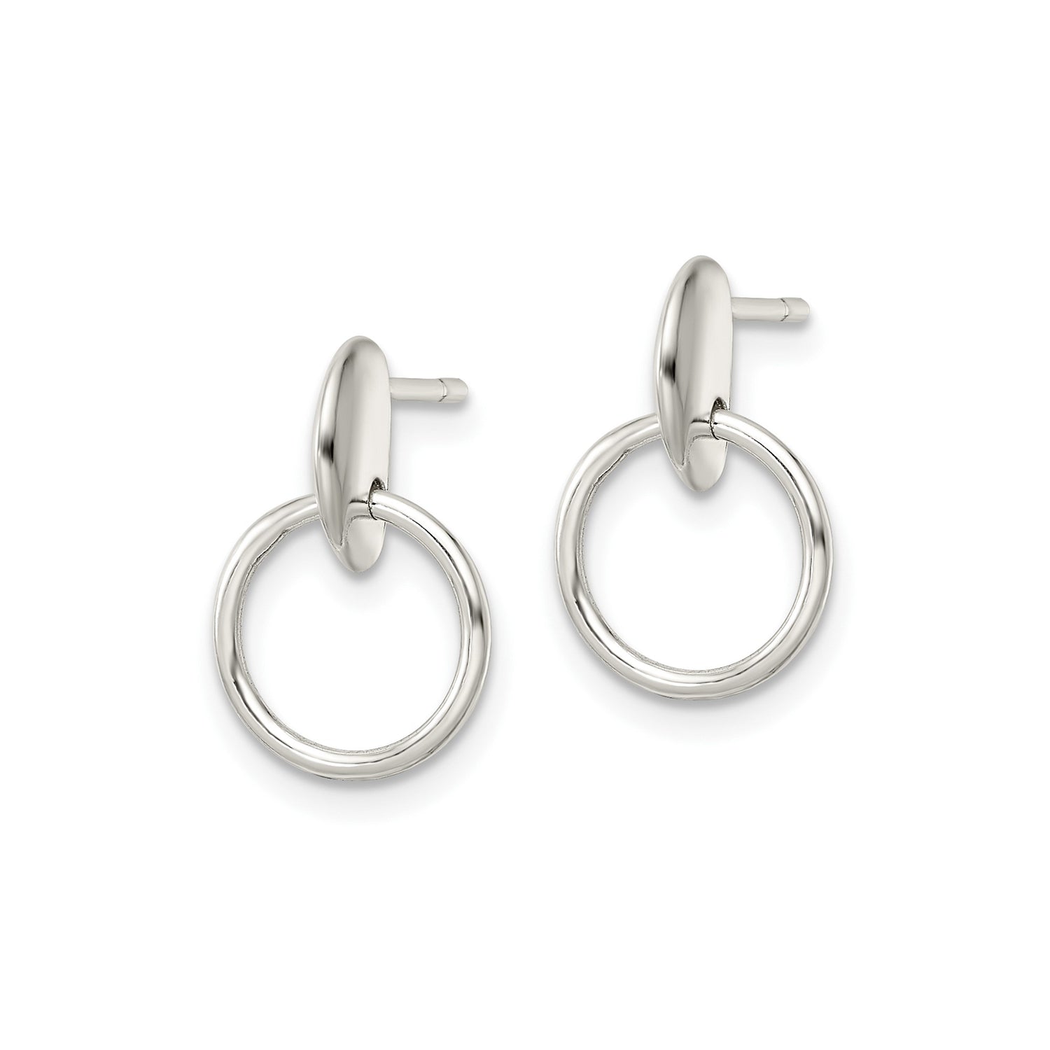 Sterling Silver Circle Drop Stud Earrings with Open Geometric Design for Women