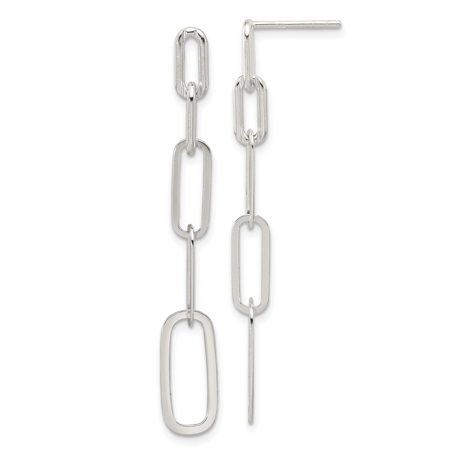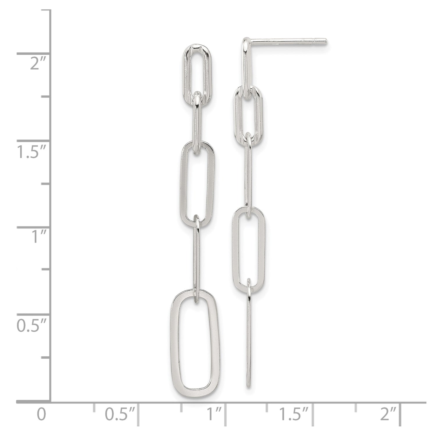 Sterling Silver Dangle Earrings, Elongated Paperclip Chain, Minimalist Drop Design for Women