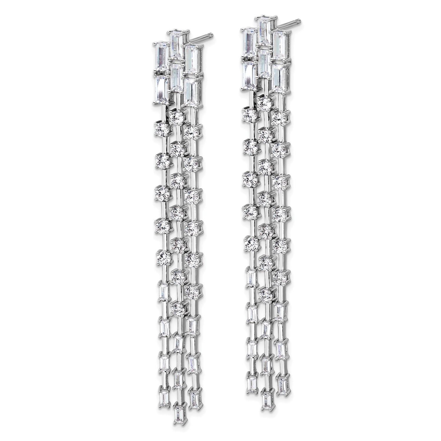 Sterling Silver Dangle Earrings with Baguette and Round Cubic Zirconia, Cascading Multi Row Design