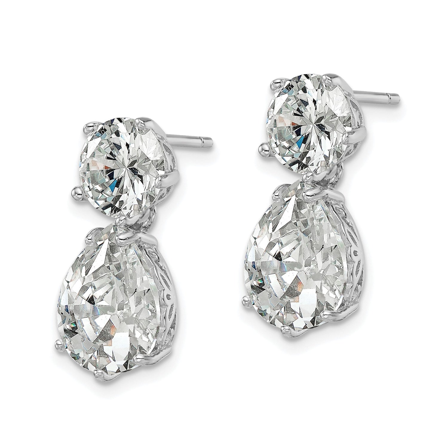 Sterling Silver Dangle Earrings with Cubic Zirconia, Filigree Drop Design, Rhodium Plated