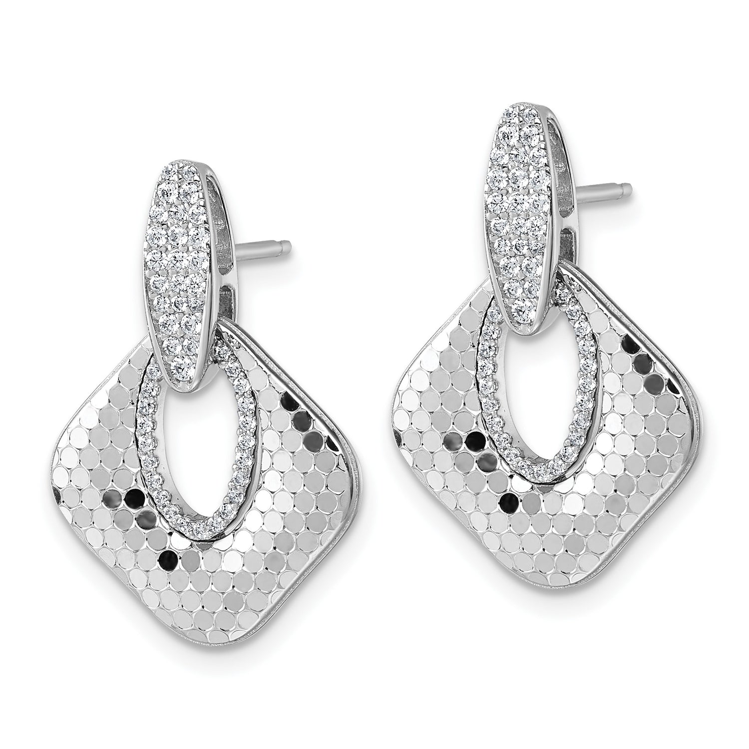 Sterling Silver Dangle Earrings with Cubic Zirconia, Open Teardrop and Square Design