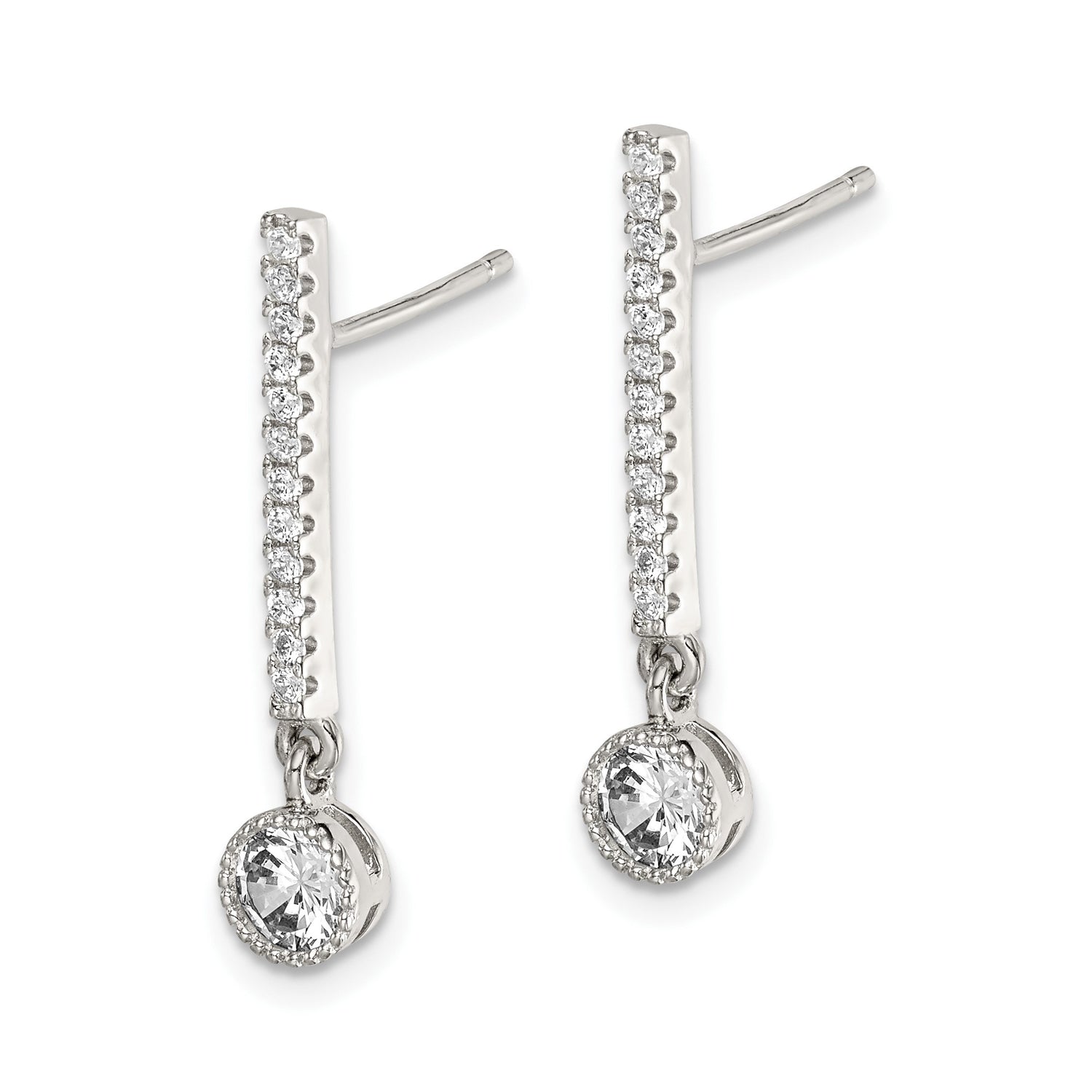 Sterling Silver Dangle Earrings with Cubic Zirconia, Solitaire Drop and Pavé Vertical Line Design