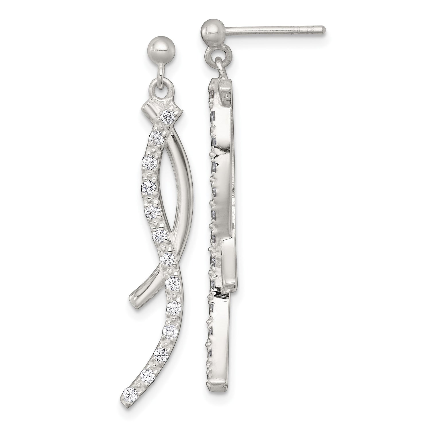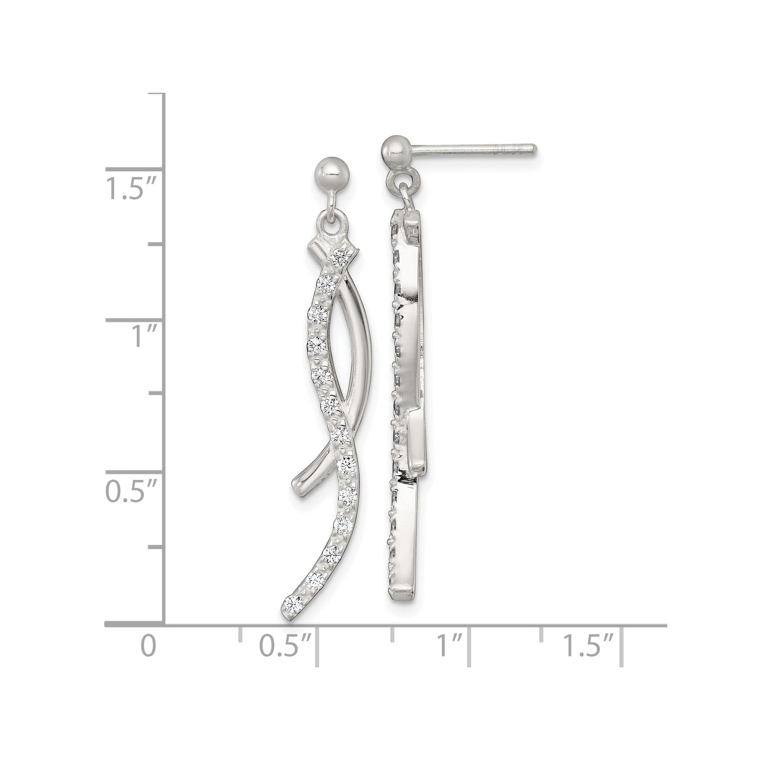 Sterling Silver Dangle Earrings with Cubic Zirconia, Twisted Bar Long Drop Design