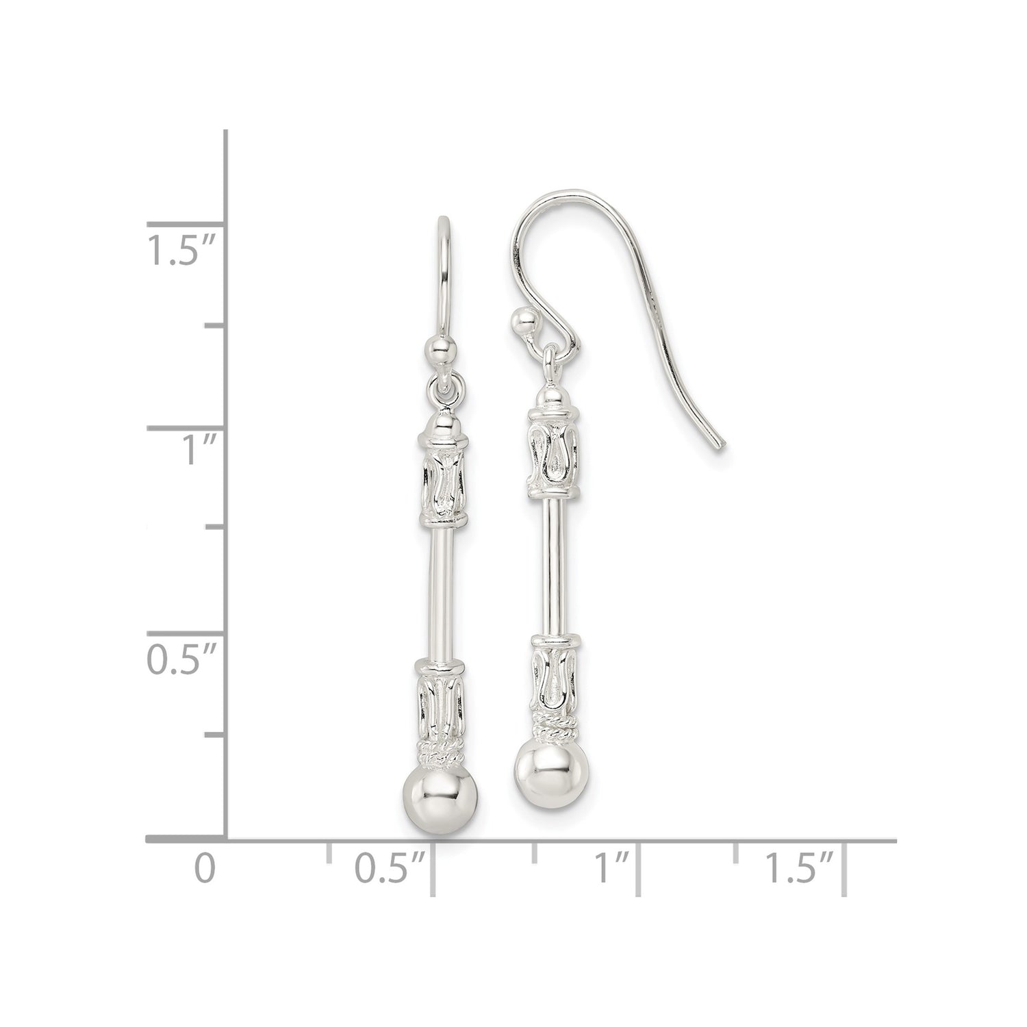 These sterling silver earrings are carefully shaped into slim bar drop earrings adorned with floral ornate bar earrings detail, offering a modern twist on vintage style earrings. The polished silver earrings finish and polished ball end earrings provide a tasteful shine that aligns seamlessly with contemporary accessories while honoring timeless earrings elegance. Their lightweight construction ensures lasting comfort, even for all-day wear.