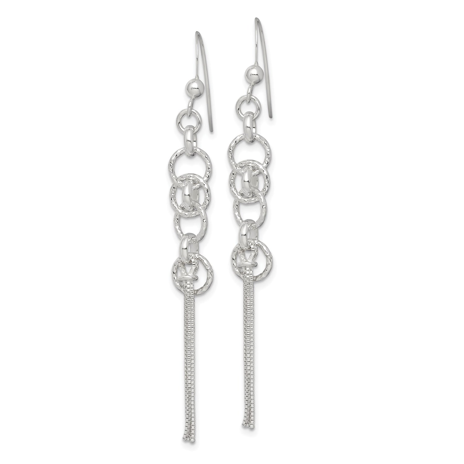 Sterling Silver Dangle Earrings with Interlocking Circles and Chain Tassels, Long Drop Design