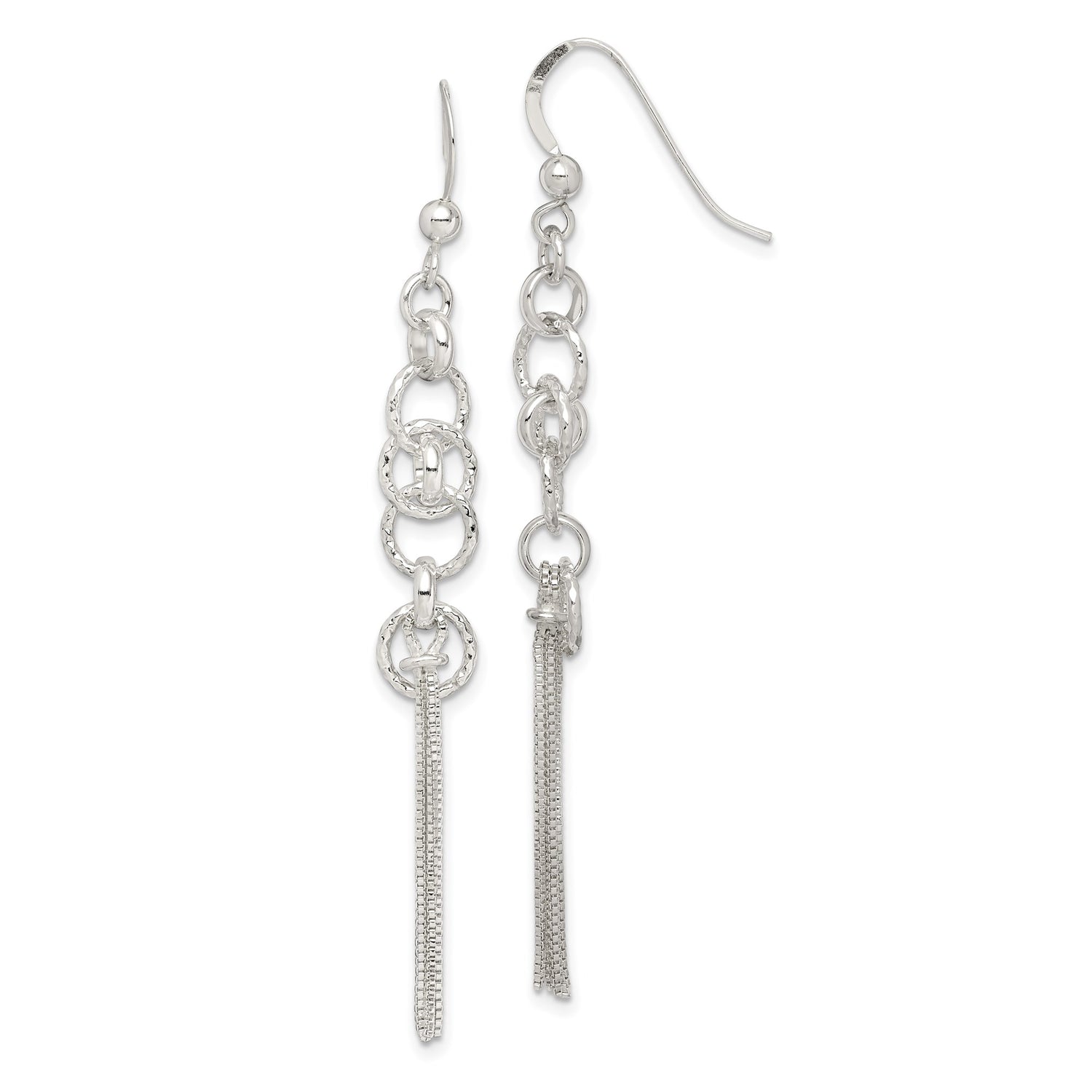 The Sleek Silver Dangle Earrings Provide A Feminine Silhouette While Highlighting The Luxury Of High Polish Silver Earrings. Each Strand Swings Gently From The Interlocking Circles, Embodying The Spirit Of Elegant Fashion Earrings That Complement Both Minimalist And Bold Statements. They're A Timeless Piece For Anyone Seeking Fashion Long Tassel Earrings That Amplify Confidence.