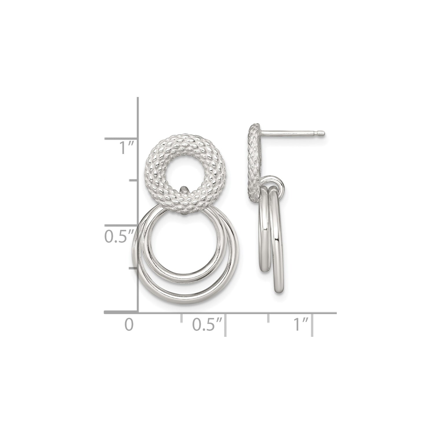 Sterling Silver Dangle Earrings with Interlocking Rings and Textured Studs, Modern Minimalist Design